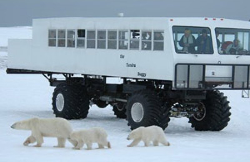 加拿大的丘吉尔市作为加拿大最北的小镇,靠近北极圈,是北极熊的首都,是唯一在人类活动地域内可以观看到野生北极熊、白鲸、北美驯鹿的地方。丘吉尔港的不寻常之处就在于这里是北极熊迁徙的必经之路。每年10、11月,大批北极熊扶老携幼从北极向南迁徙,聚集在哈德逊湾冰原上,等待海水结冰,捕食海豹。这些可爱的大白熊们形态可掬,有的在雪地上打架,有的吃饱后懒洋洋地睡觉,有的则靠近冰原车好奇地看着人类。