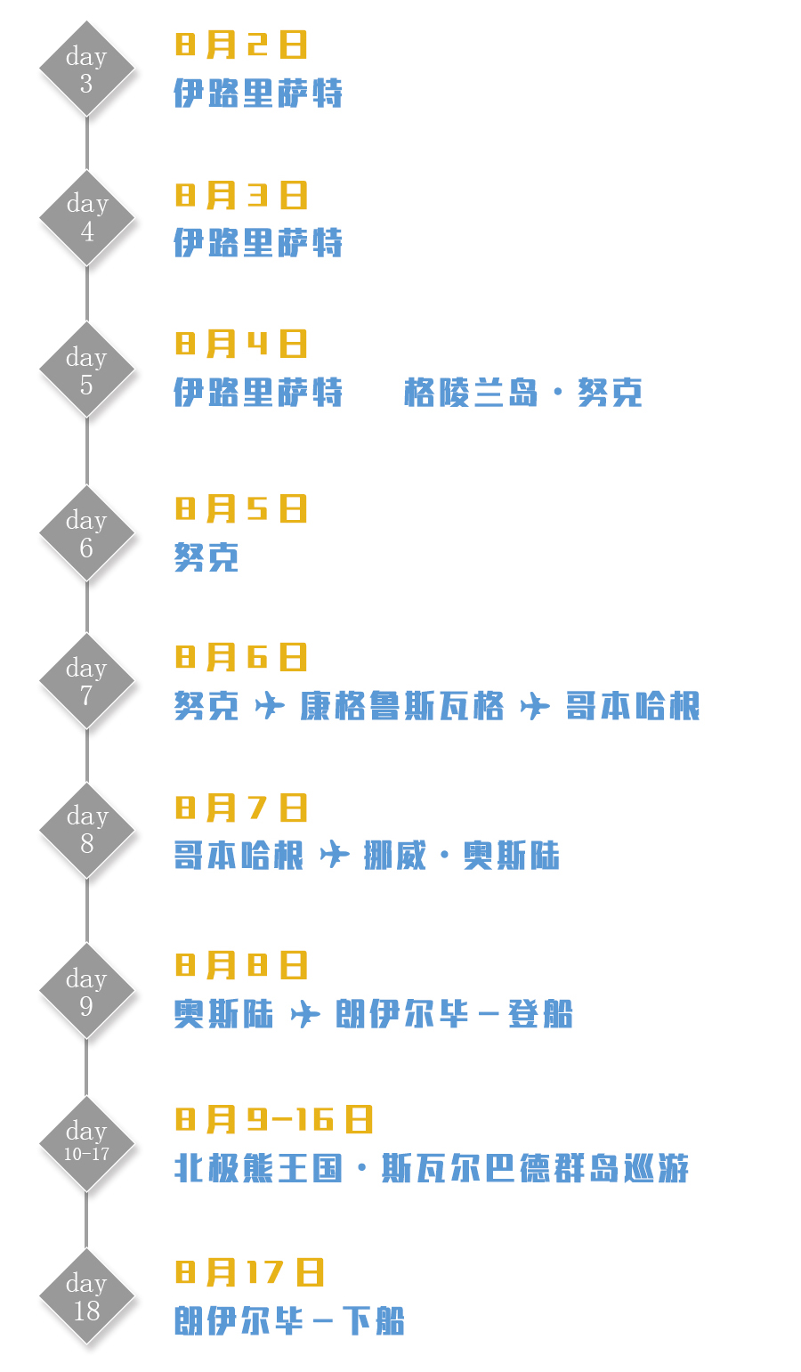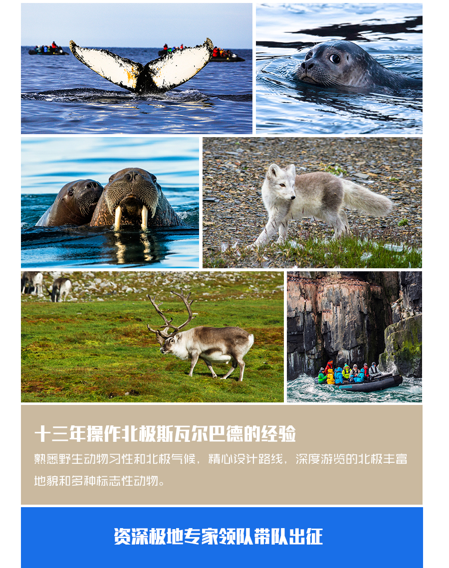 从今天起,我们的所有行程将取决于天气和冰面情况,探访无人区,穿越北纬80度,欣赏壮丽的峡湾、冰川和浮冰,寻觅北极熊,北极狐,驯鹿,海象,海燕等北极特有的野生动物。