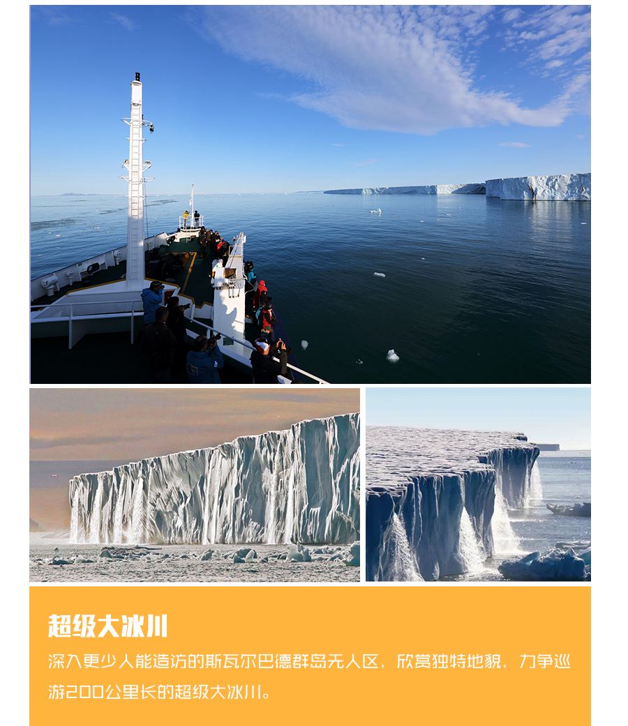 (和普通的环斯瓦尔巴德线路不同,有机会欣赏到壮观的冰瀑布和冰山上的北极熊。)