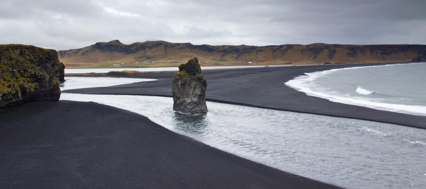 在美丽的维克小镇欣赏黑色沙滩和海礁石。