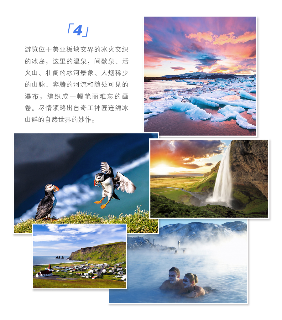 4. 行程安排中酒店住宿费(冰岛各小镇、朗伊尔毕、伊路里萨特为特色酒店);