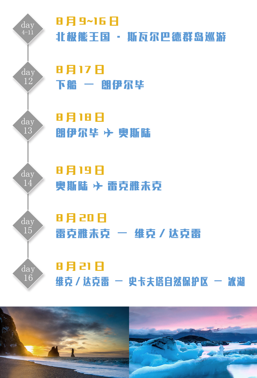 (和普通的环斯瓦尔巴德线路不同,有机会欣赏到壮观的冰瀑布和冰山上的北极熊。)