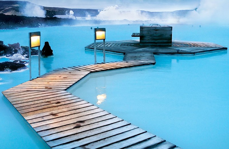 前往雷克雅未克。享受著名的天然大西洋海底地热的蓝湖温泉。据说此温泉水有治疗风湿,泉底之白泥有美颜护肤之效。