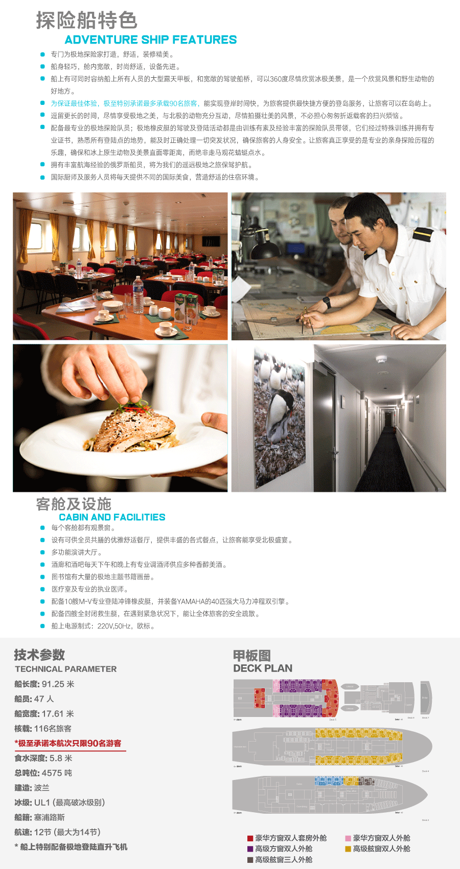 3. 北极抗冰船上三人舱1/3或双人外舱1/2舱位费;