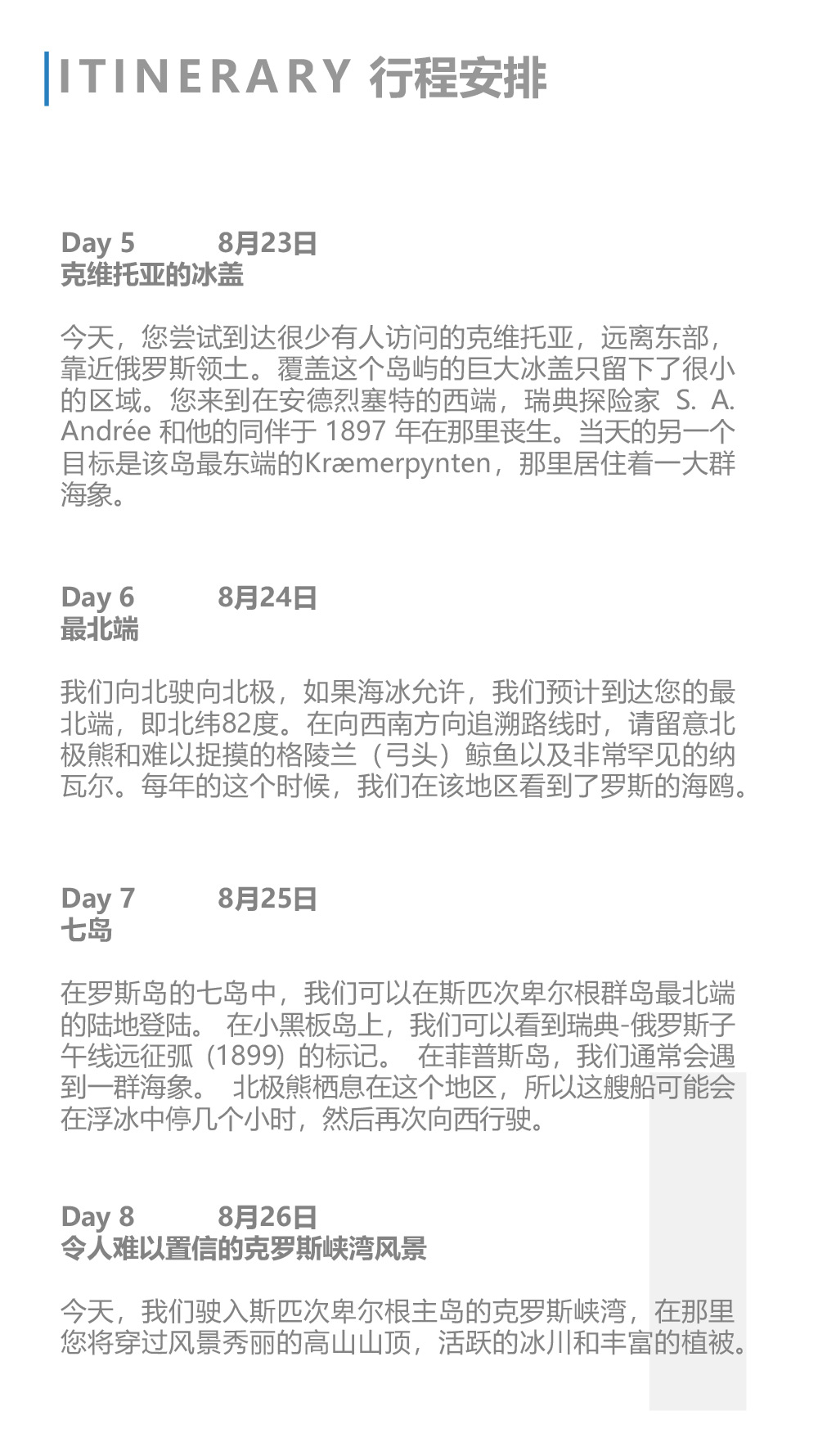 追踪北极熊——在这片苍茫的高纬度北极地区,栖息着3000多头北极熊,北极熊的数量比人多,在这里是当之无愧的王者;深度探访北极熊的故乡——斯瓦尔巴德群岛