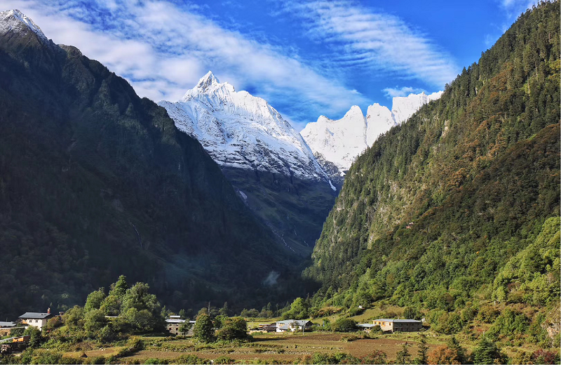 随后沿金沙江河谷前往,抵达松赞塔城山居,晚餐在村民家品尝塔城火腿。