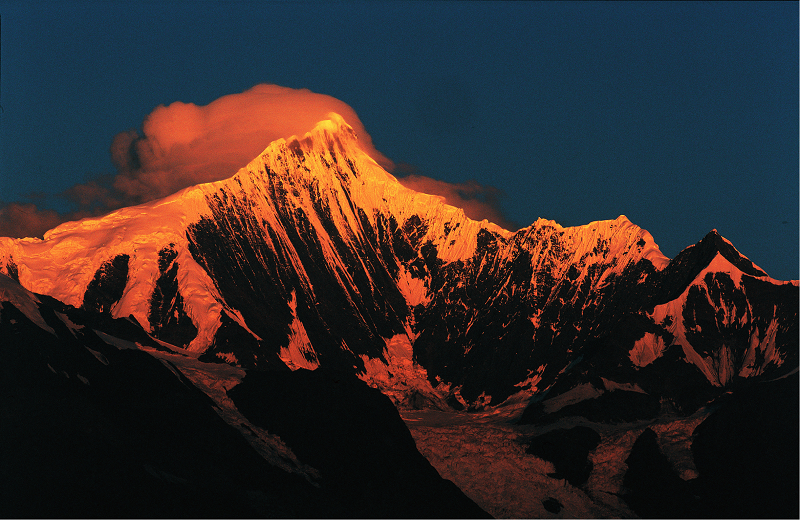 明永冰川是梅里雪山主峰卡瓦格博下的一条长长的冰川,从海拔6740米的梅里雪山往下呈
