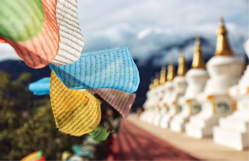 下午 前往酒店旁边的藏族人家参观,了解传统藏式民居建筑,品尝藏式酥油茶和糌粑,在管家的帮助下体验手工印制经幡。也可以选择将经幡挂到寺院、雪山垭口或白塔旁,祈愿平安喜乐.