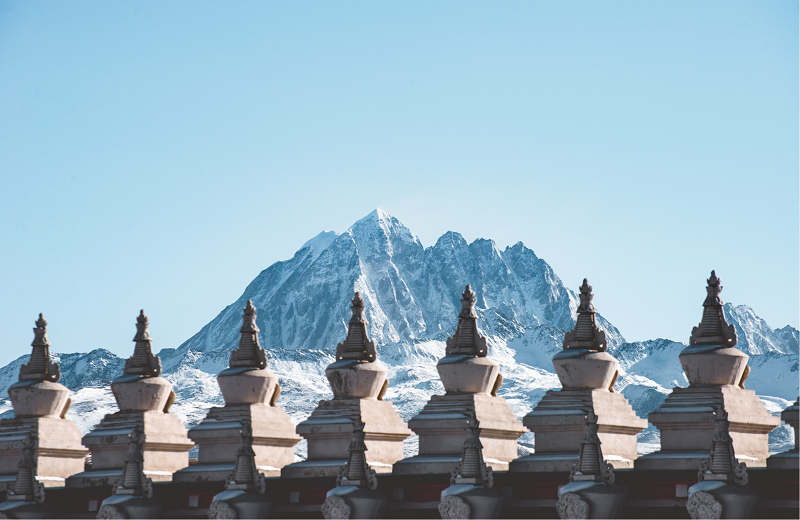 延最美景观大道国道318西行前往雅江,翻越折多山,前往黑石城。黑石城山上遍布的黑色经石是由早年在当地修行的喇嘛背石垒砌而成,这里是观赏贡嘎神山的最佳观景点之一。