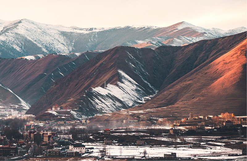 延理亚公里前往乡城,途经毛垭大草原,翻越兔儿山,来到青藏高原最大的古冰川遗迹—壮美的海子山。傍晚时分抵达乡城,电影《从你的全世界路过》正是在这里取景。