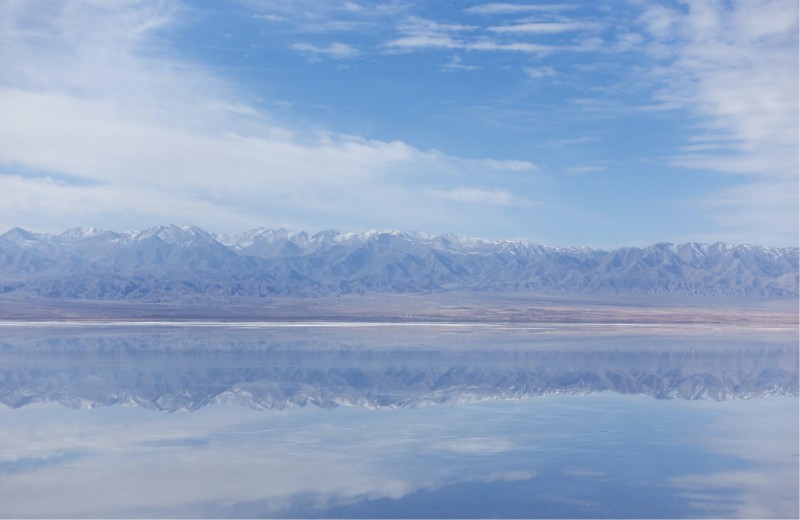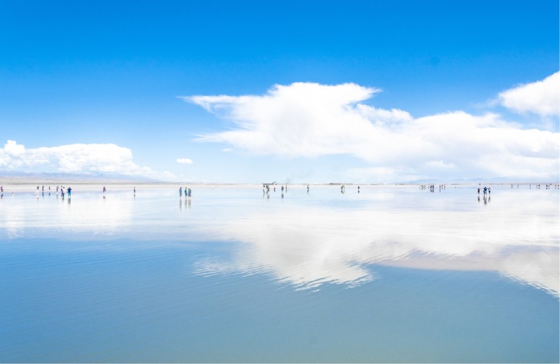 【茶卡盐湖】茶卡盐湖是柴达木盆地有名的天然结晶盐湖,中国的“天空之镜”,盐产量可供全国人民使用约75年。景区里有众多的盐雕可以观赏,还可以乘坐小火车,到盐湖的深处观光。游客可以赤脚走到湖面上观看和拍摄自己的倒影,如果足够幸运,白天可以看到在这些河面上形成的海市蜃楼。
