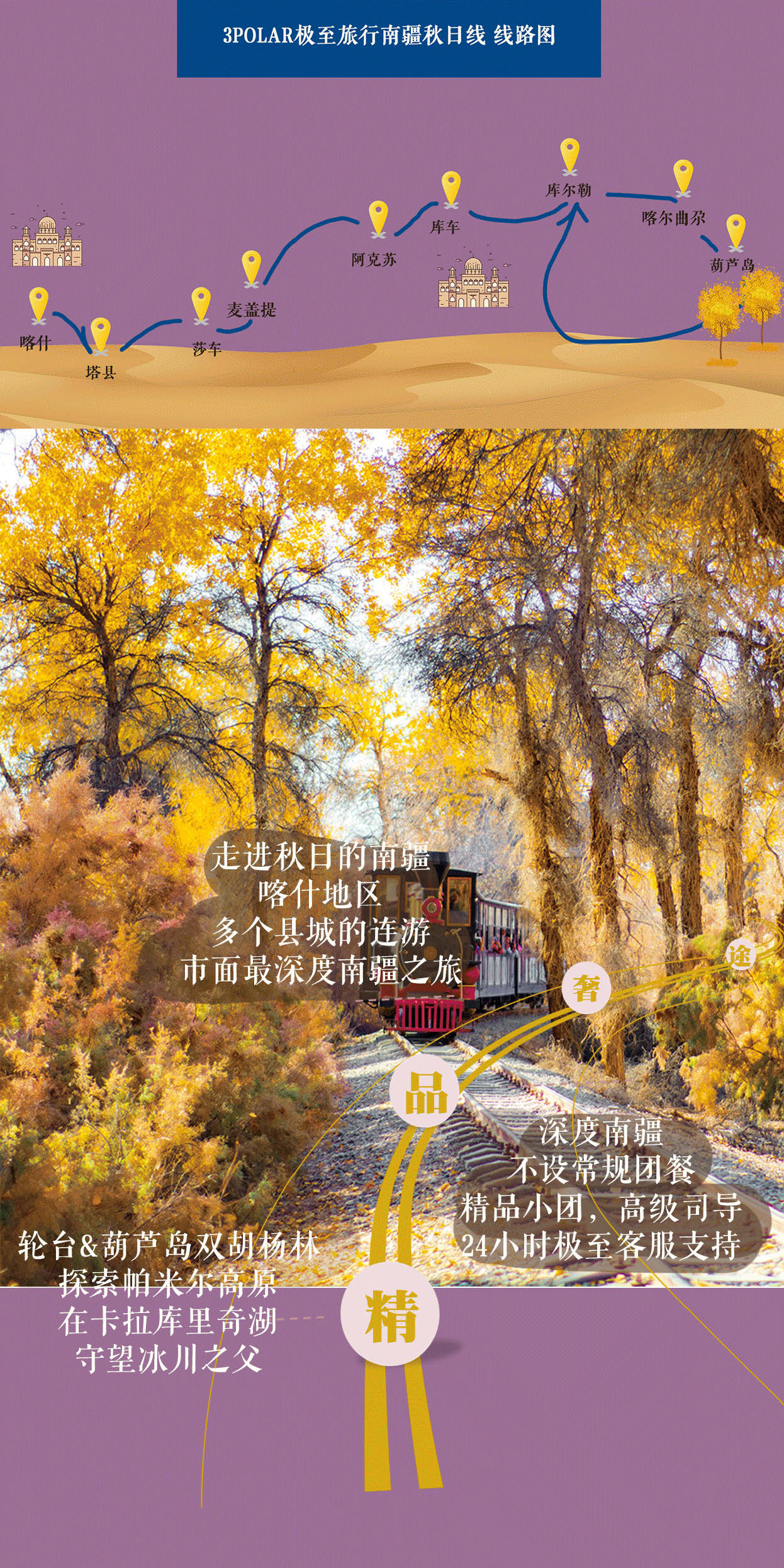 走进秋日的南疆、喀什地区多个县城连游,市面最深度南疆之旅,轮台&葫芦岛双版胡杨林,探索帕米尔高原,在卡拉库里奇湖守望冰川之父,不设常规团餐、精品小团、高级司导24小时极至客服支持