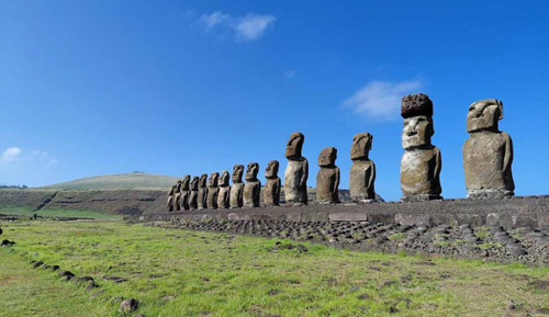 全天的时间探访复活节岛的经典景点,本岛最后一任酋长霍图玛图阿的居所遗址——汤加里基祭坛,前往拉拉库火山,这里是制作摩艾石像的采矿场,很多巨大的雕像散乱在火山坡上。到达复活节岛的北海岸,参观泰皮托库拉,除采矿场以外最大石像所在地,游览奇特的球形石,是本岛的能量中心,抵达Anakena白色珊瑚海滩,这里曾是古代皇族的居所。