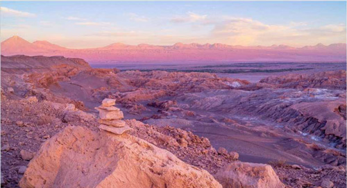 乘机前往北部圣佩德罗德阿塔卡马,前往月亮山谷健行活动(中级),欣赏沙漠中最美丽的日落。此处与月球表面非常相似,被科学家称为“地球上最接近月球的景色”,以此得名。夕阳西下,远处的安第斯山脉、太阳的余晖与缓缓升起的月亮,月亮谷呈现超现实主义的如同月球表面般泛着紫色、粉红色、金色的光芒,无限荒凉又美到极致的景色就出现在眼前。