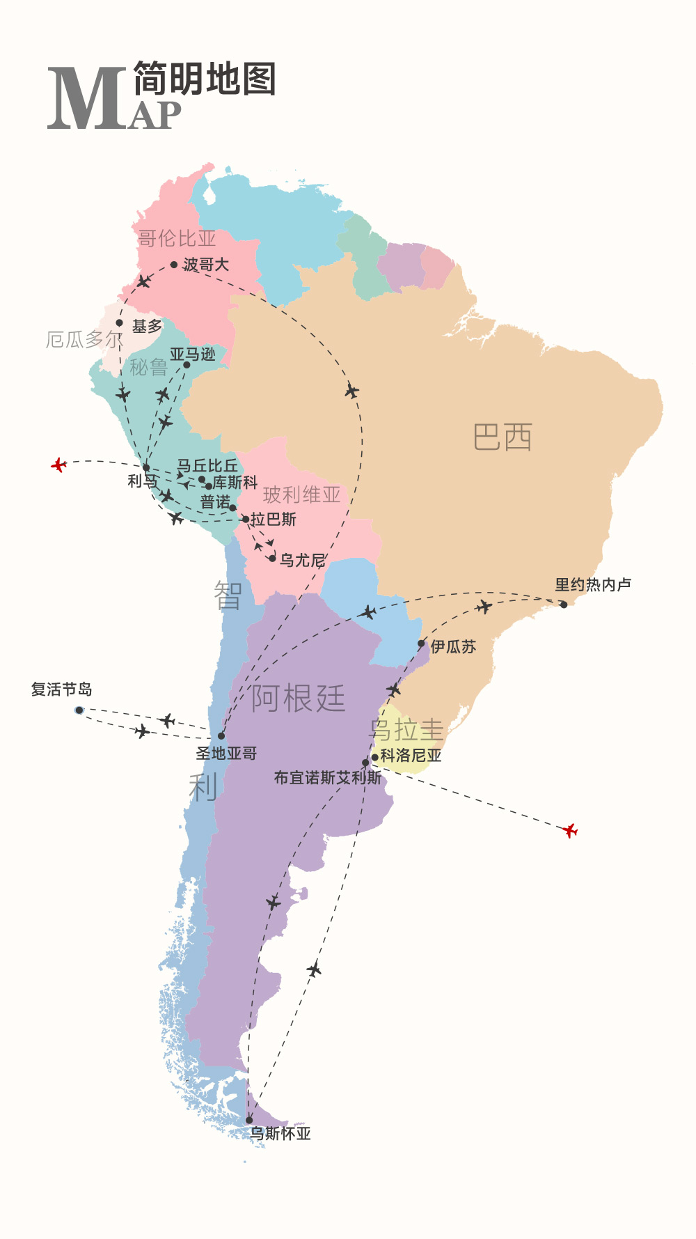 登陆南极大陆,造访南极科考站,也深入在海上冰山丛中巡游;搭乘极至优选的科技型豪华游轮,穿越德雷克海峡,仪式感满满;正值企鹅们的繁殖季节,看无数企鹅千姿百态;座头鲸到南极捕食的季节,近赏鲸群跃出海面;近观海豹等极地野生动物,一路上,观赏罕见的极地海鸟;到乌拉圭穿越时空游世界遗产小镇;2晚连住伊瓜苏玩遍 巴西 + 阿根廷 两侧;3天2晚玩透 智利·复活节岛 探秘世界最美遗产之一;揭秘南美的黄金秘史 波哥大·基多·库斯科;重走印加文明兴衰之路 厄瓜多尔 + 秘鲁 两国串游