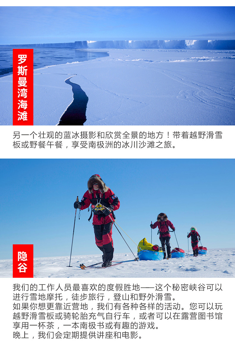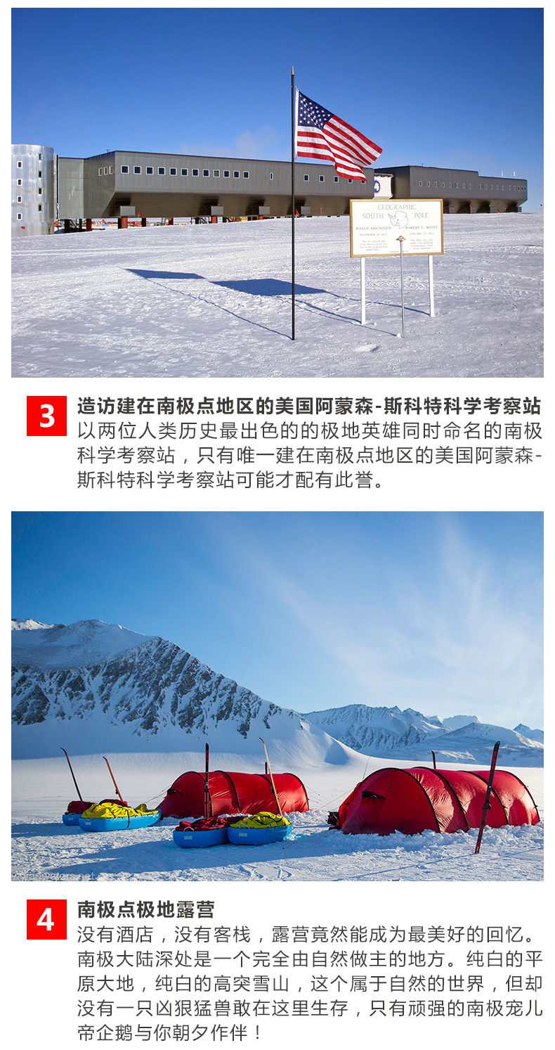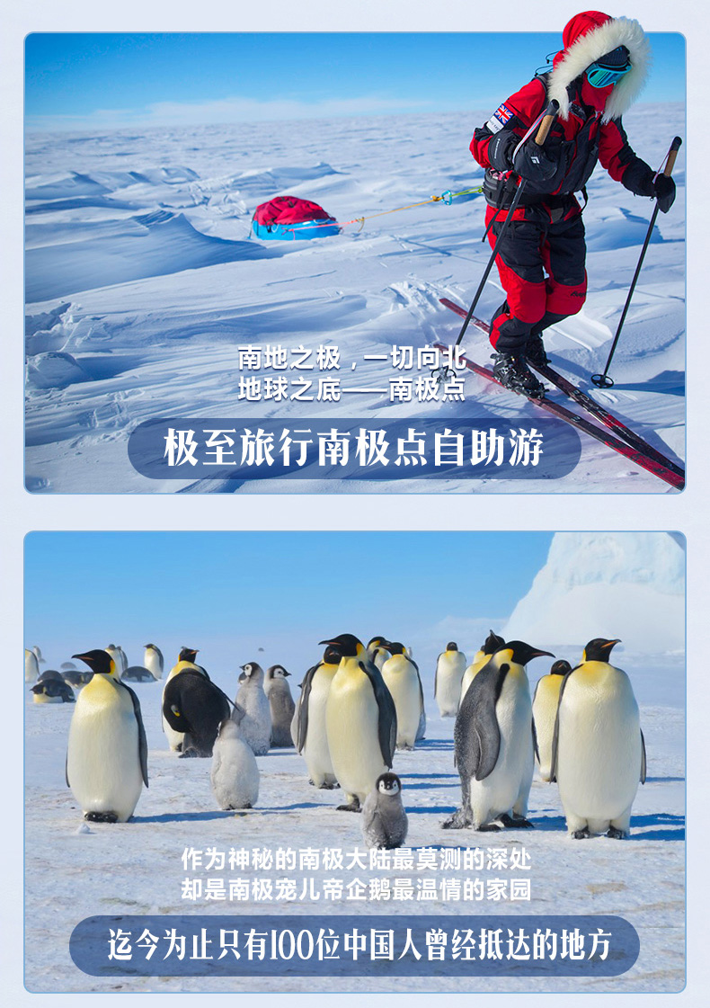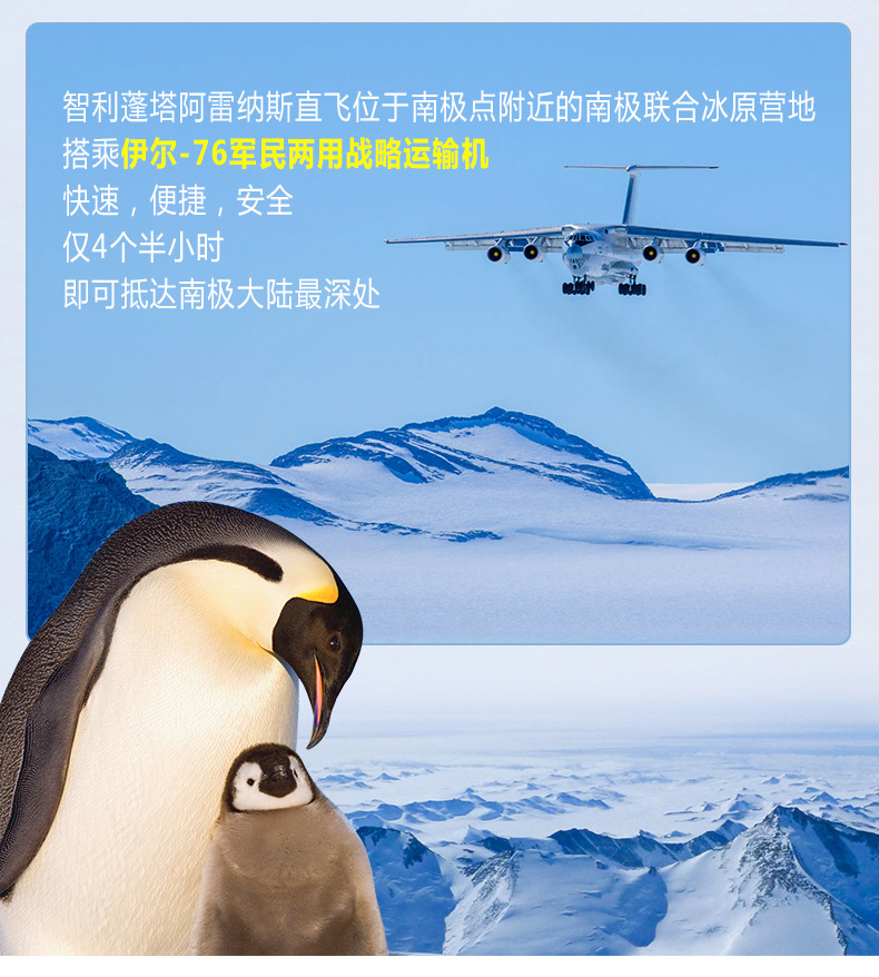 直抵地球之底的震撼体验/军民两用飞机全速直飞/在南极点和帝企鹅为伴/感慨南极大陆最神秘又温柔的一面/丰富多彩的极地活动/