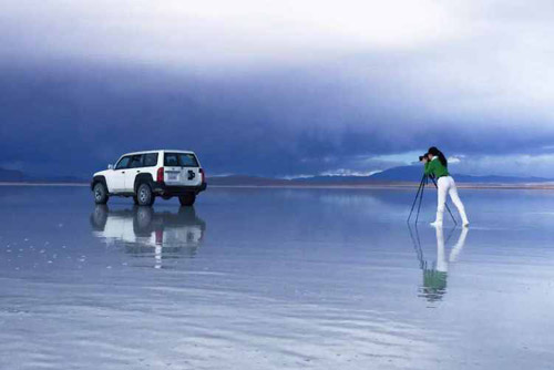 乌尤尼盐湖在四万年的时间沉淀中留下一层以盐为主的矿物硬壳,是世界上最大的盐湖,绵延12500平方公里,湛蓝的天与一望无际的洁白盐粒在天边交汇,让人感受到大自然的纯净,雨后湖面像镜子一样,反射出的倒影美丽得让人窒息。这就是传说中的“天空之镜”,曾被国家地理杂志列为世界十大奇景之一。全日在天空之镜游玩,拍摄日出、日落,感受自然之美。