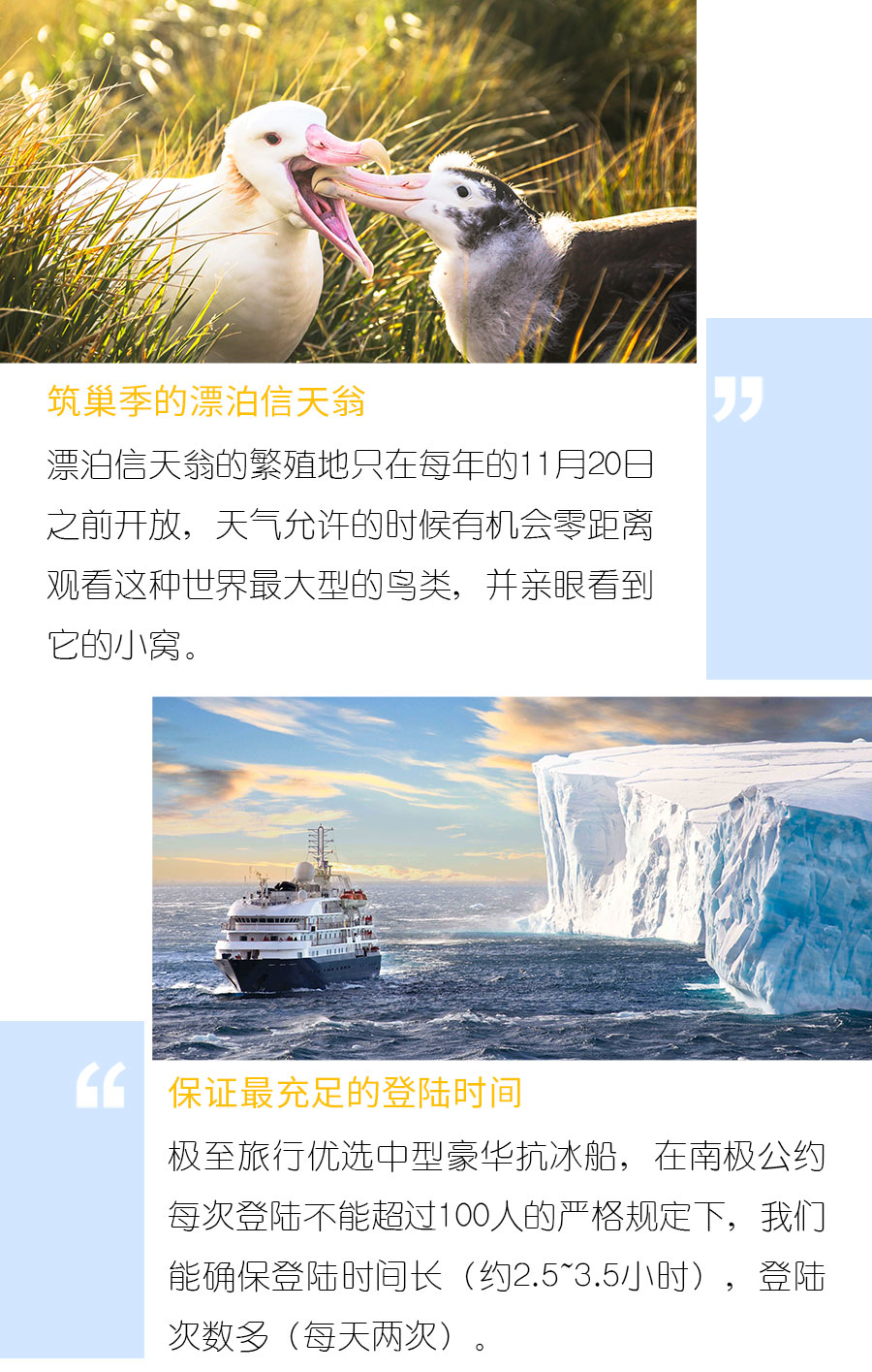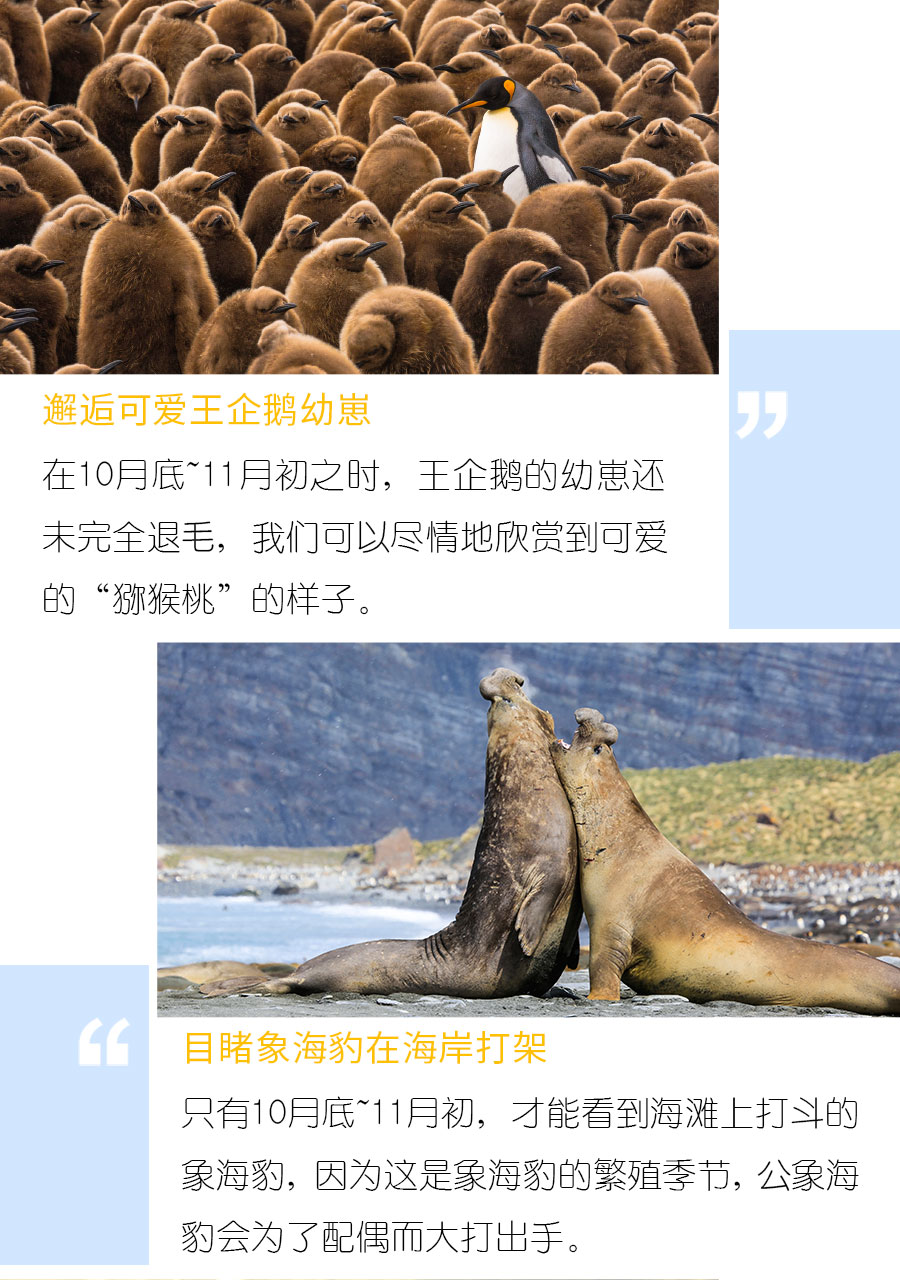 观看王企鹅小宝宝,信天翁哺育,象海豹打架的最佳季节
