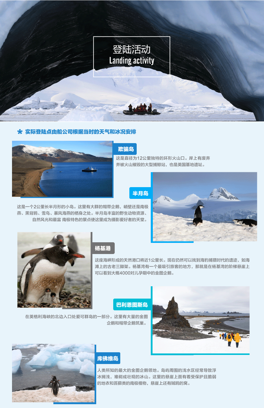 5)船公司安排的登陆活动以及讲座及简介会,船公司赠送极地户外夹克,免费租用橡胶靴。