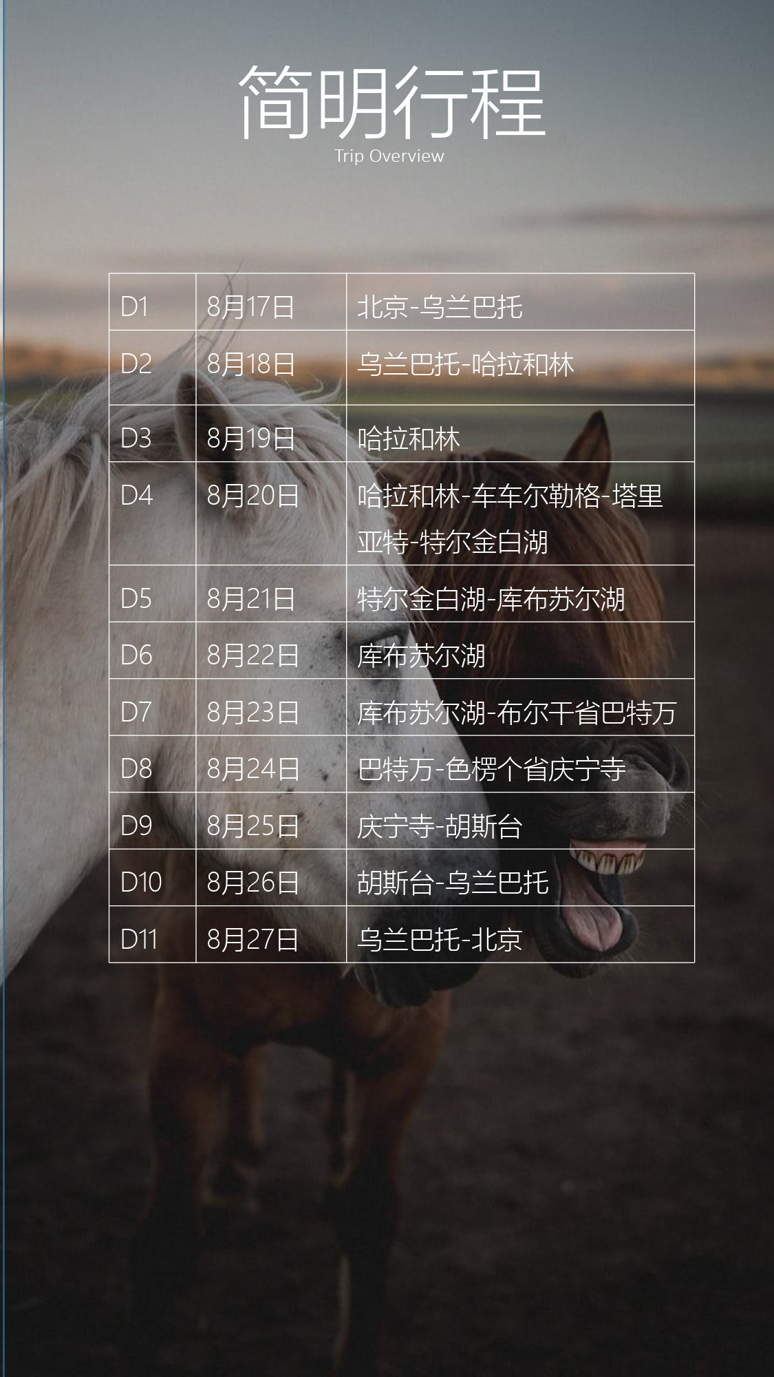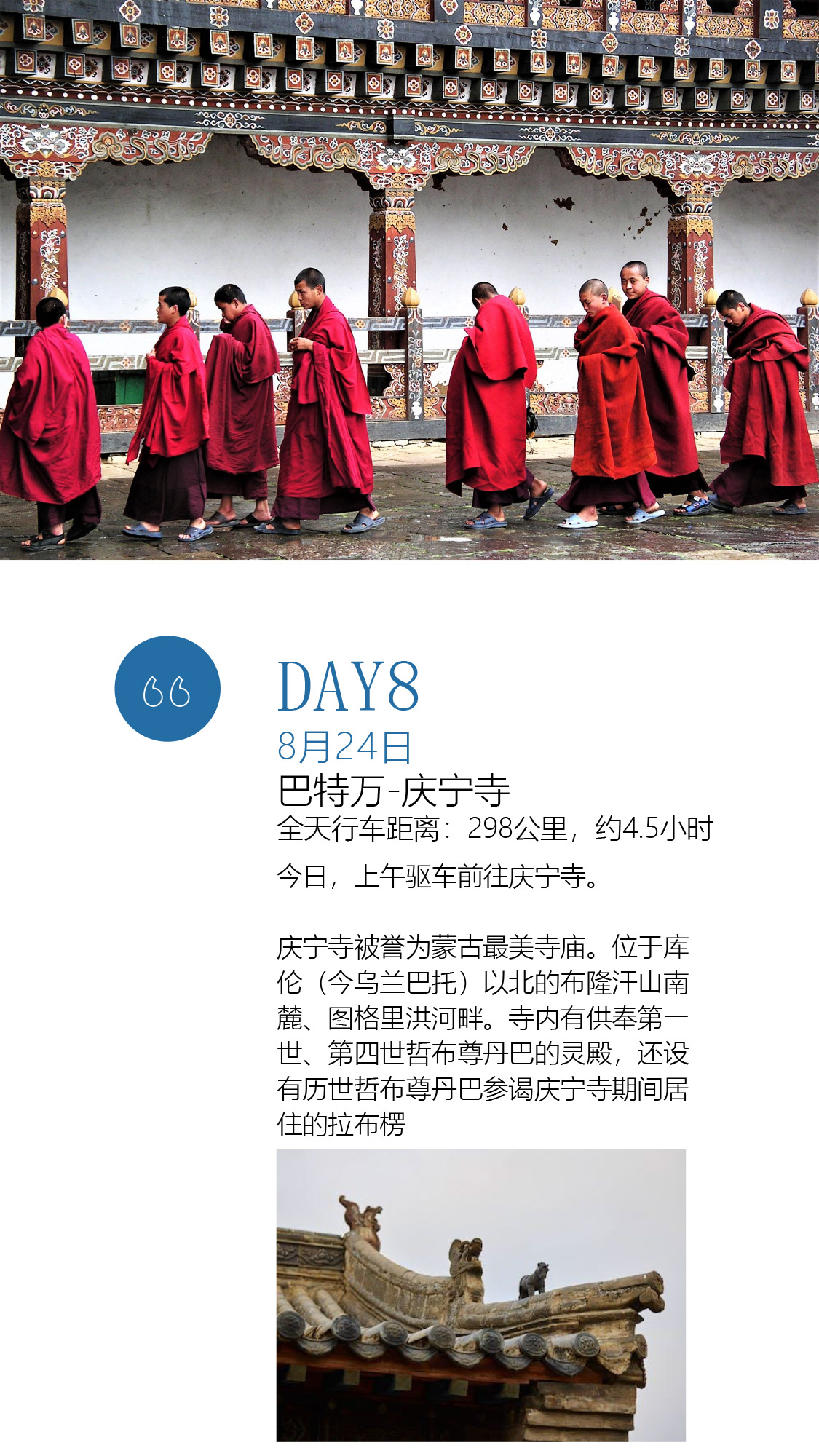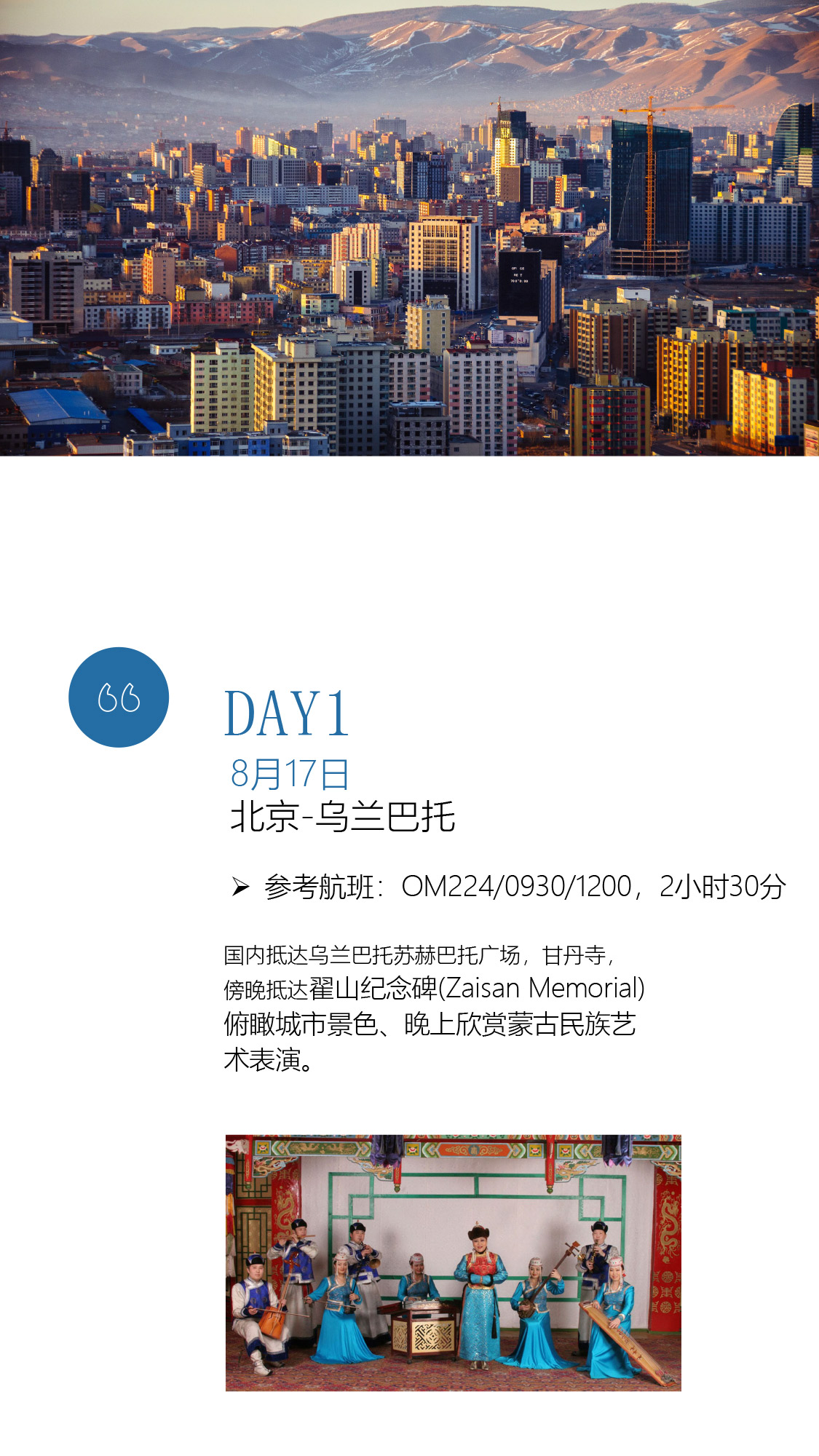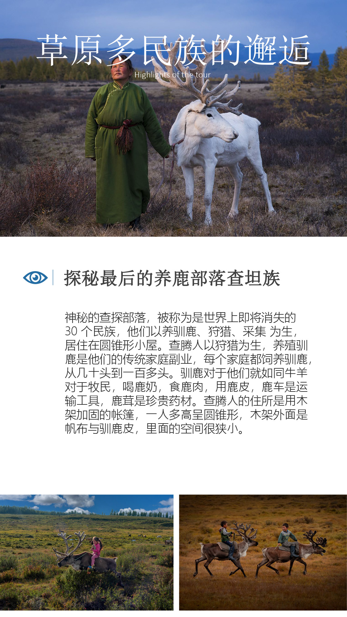 11日的独家蒙古深度游线路,区别与市面所有蒙古旅行;两日连住库湖,享受蒙古国最美风光;造访蒙古古都哈拉和林,并游览藏传佛教的喇嘛教寺庙;车车尔勒格感受蒙古族的祖先文化;造访国内没有的喀尔喀族、布嘎特族和达尔哈族居民;大口吃肉的酣畅淋漓;寻找蒙古的野生动物。