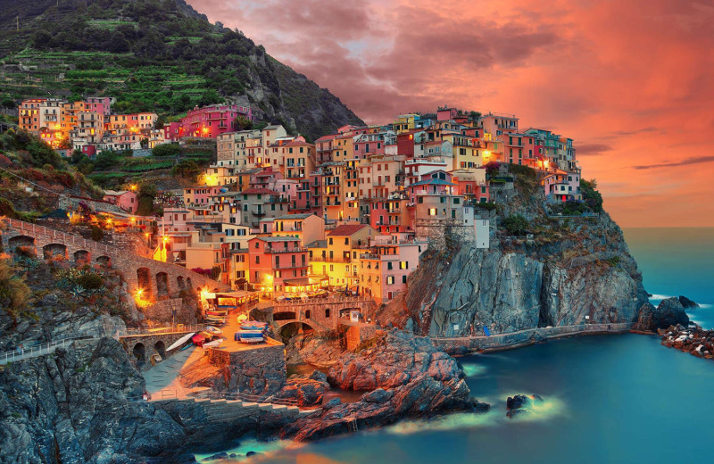 马纳罗拉:五渔村中最负盛名的村子,最经典的景色就来自这里,电脑桌面及明信片的常客。
