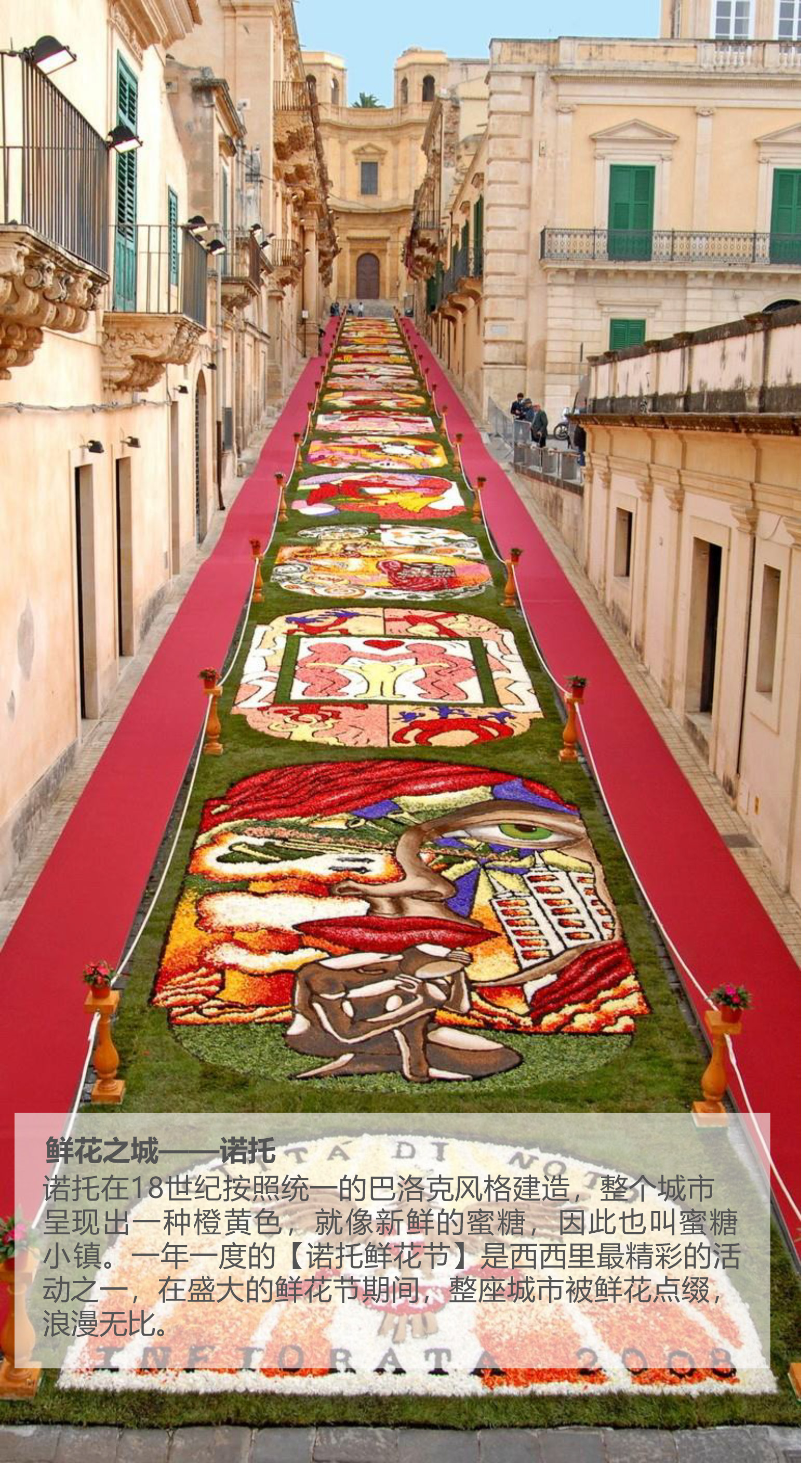 诺托鲜花节:世界上最丰富多彩的节日之一,大约30万朵鲜花在艺术家们的创作下成为一幅幅艳丽的画卷。