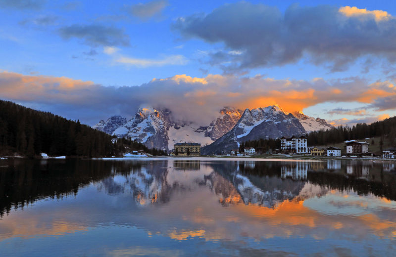 早餐后驱车前往意大利多洛米蒂山区的米苏里纳湖,抵达后入住酒店休息,随后沿湖游览、观赏日落。