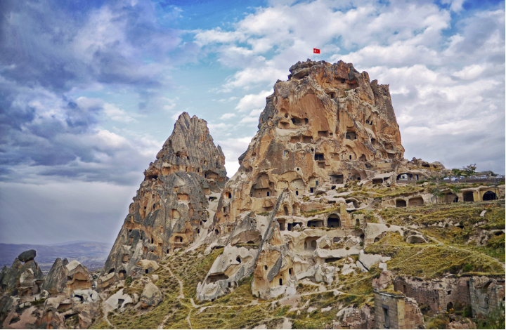 乌奇希萨尔堡:它像一块巨大的多孔岩石高耸直立,是卡帕多奇亚中最大、最美的“精灵烟囱”。站在乌奇希萨尔城堡的顶峰,可以将整个卡帕多西亚的景致尽收眼底。城堡顶部有许多雕刻而成的罐子、坟墓和大型蓄水池。自罗马时期以来,这里就雕刻了许多房间、避难所、仓库、蓄水池、坟墓和地窖,一直是抵御阿拉伯人袭击的重要防御点。