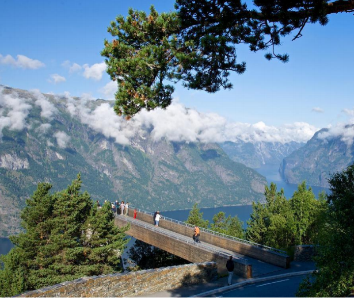 前往卑尔根,沿途穿越世界上最长的公路隧道洛达尔隧道,全长24.51km。体验壮观的St egaste in 观景台,可欣赏艾于兰峡湾上方650米处的全景。