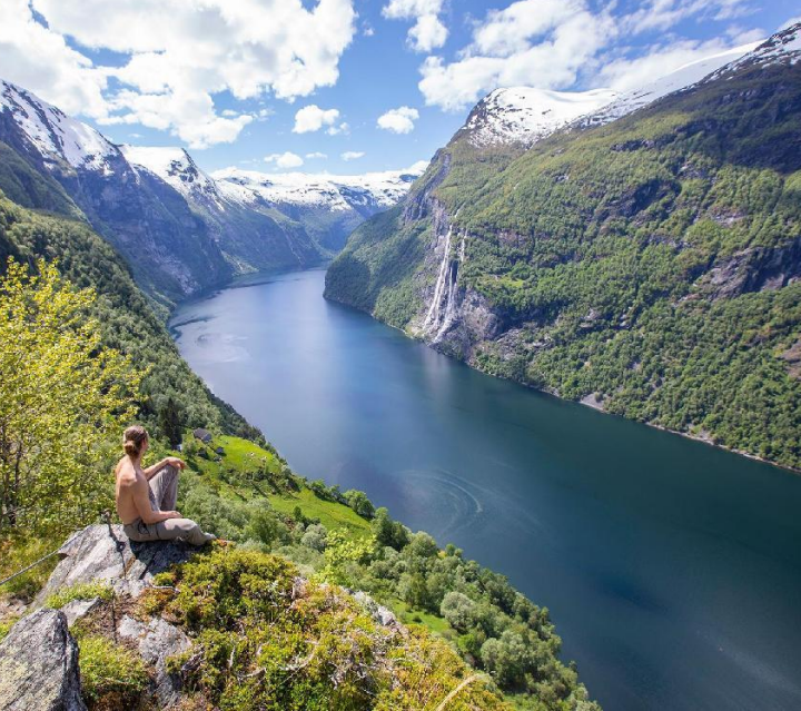 盖朗厄尔峡湾被联合国教科文组织列入世界遗产名录,沿岸环绕着白雪盖顶的宏伟山峰、奔泻而下的瀑布以及苍翠繁茂的植被。独特的自然环境形成于末次冰期,冰川蚀刻出深不见底的峡湾并塑造了高大山脉,如今常被列为全球最壮美之地。
