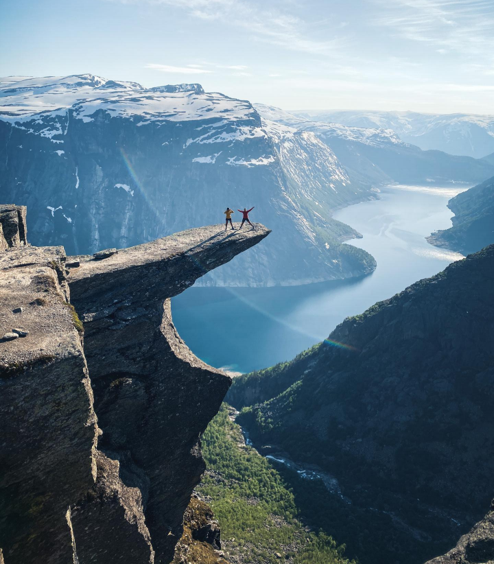 山妖之舌是挪威最令人惊叹的悬崖之一,山体中伸出的巨大岩石凌空于湖面上方约700米。这里是备受世界各地游客青睐的徒步旅行目的地。 山妖之舌全程22公里的山径,上升高度约320米 ,耗时约12小时。