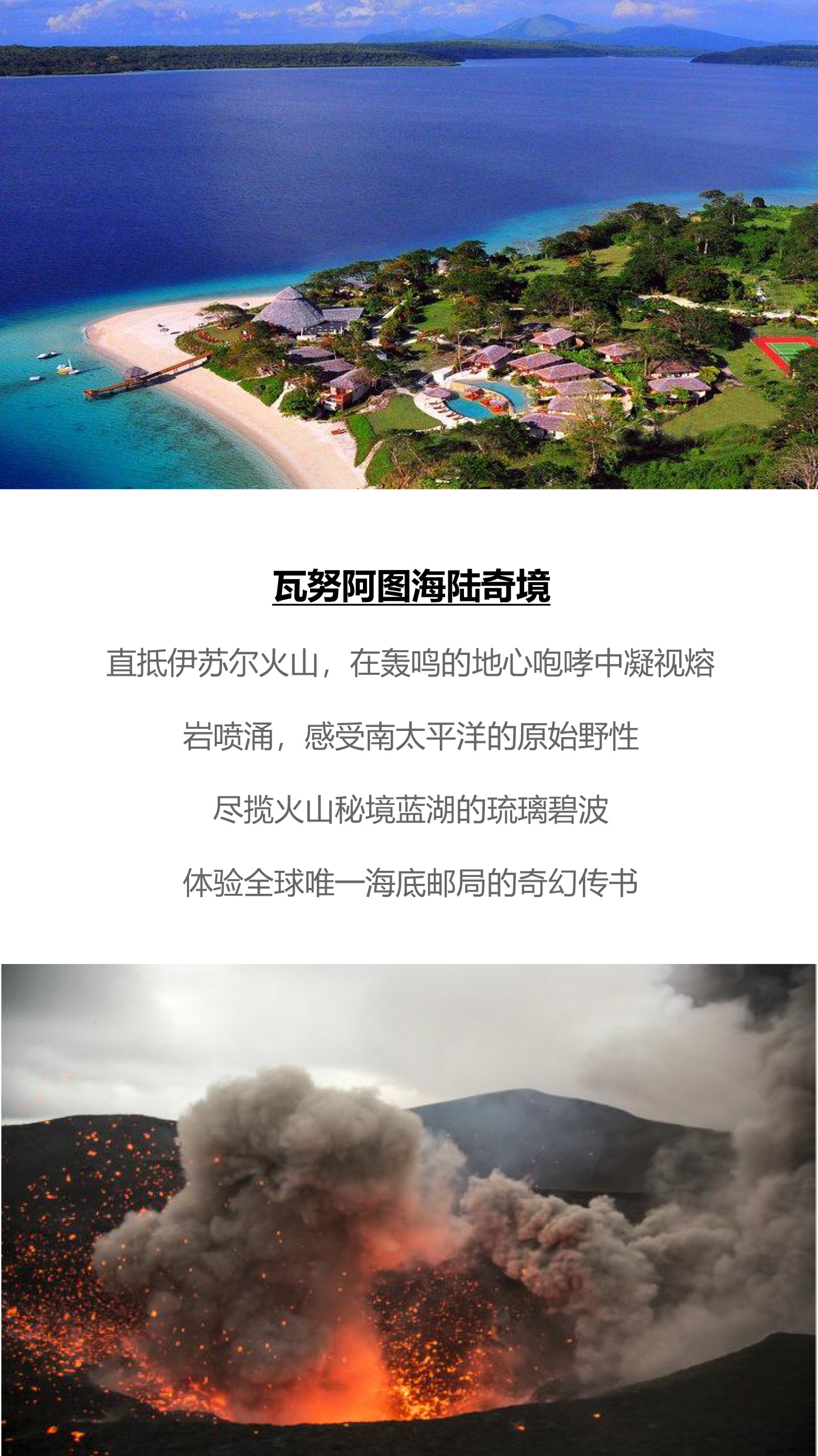 乘机飞往塔纳岛,这里是南太平洋最原始狂野的岛屿之一,以活火山、原始部落文化闻名,被誉为"探险家的终极目的地"。