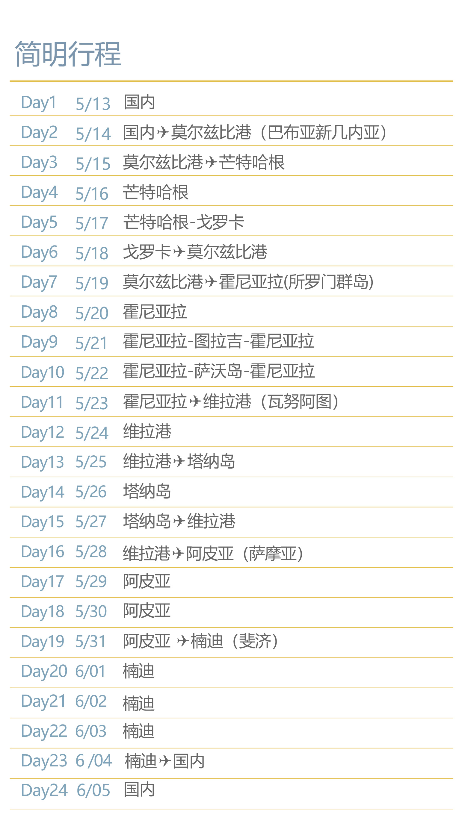 晚上搭乘航班返回国内,结束奇幻的南太平洋岛国之旅。