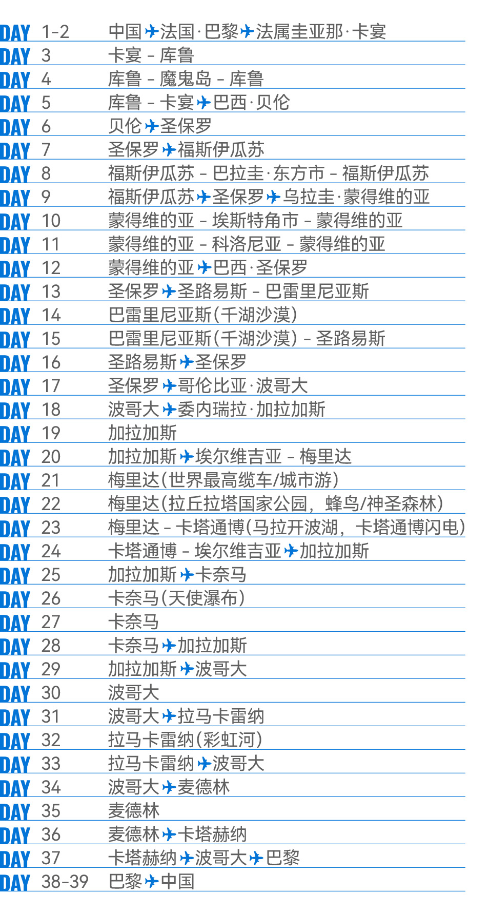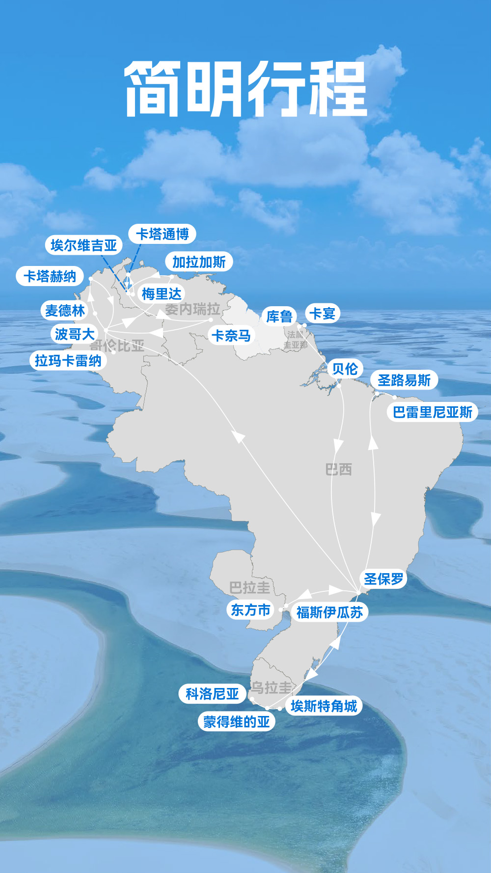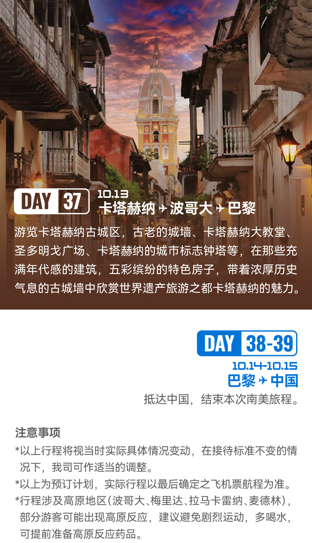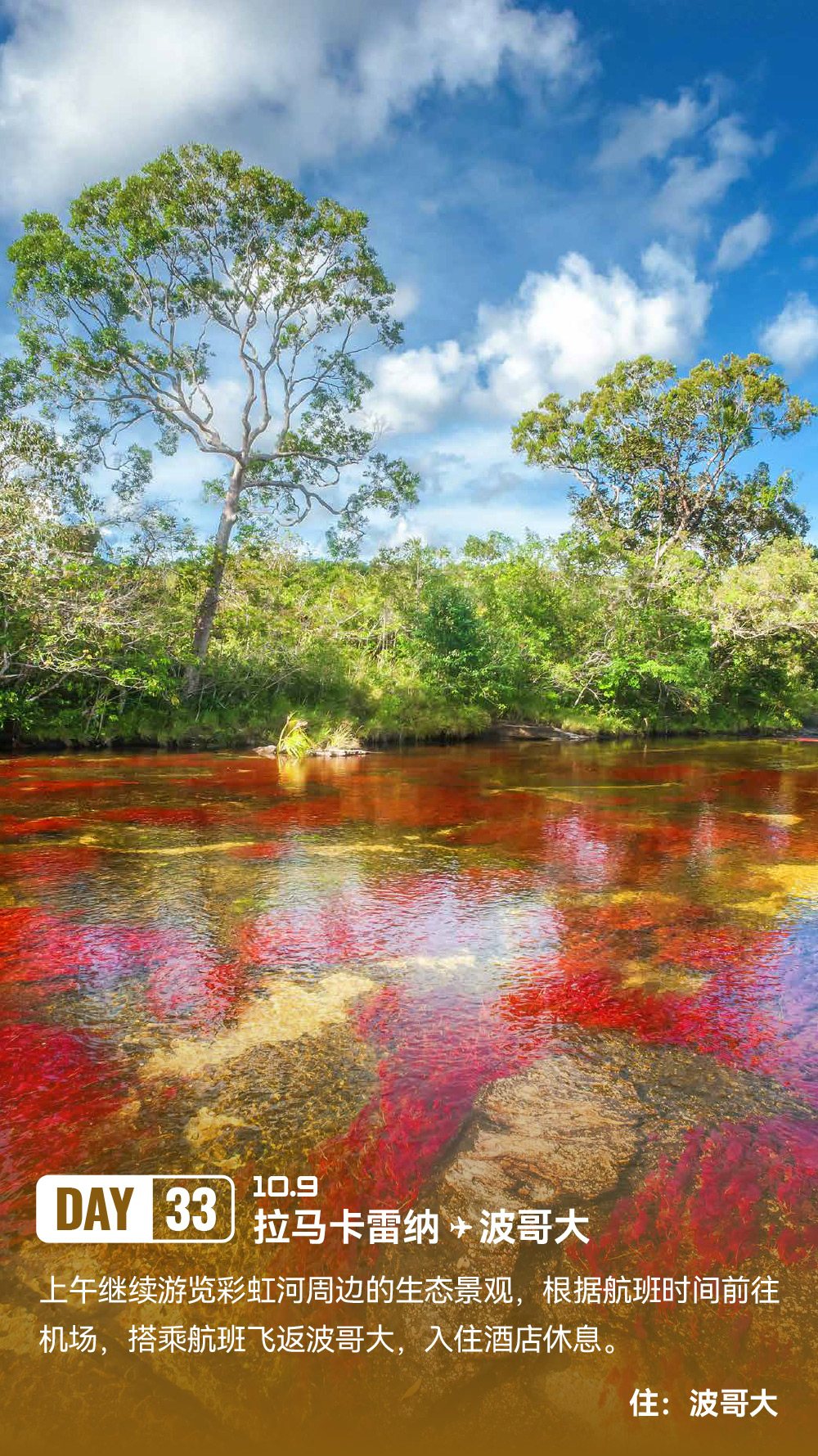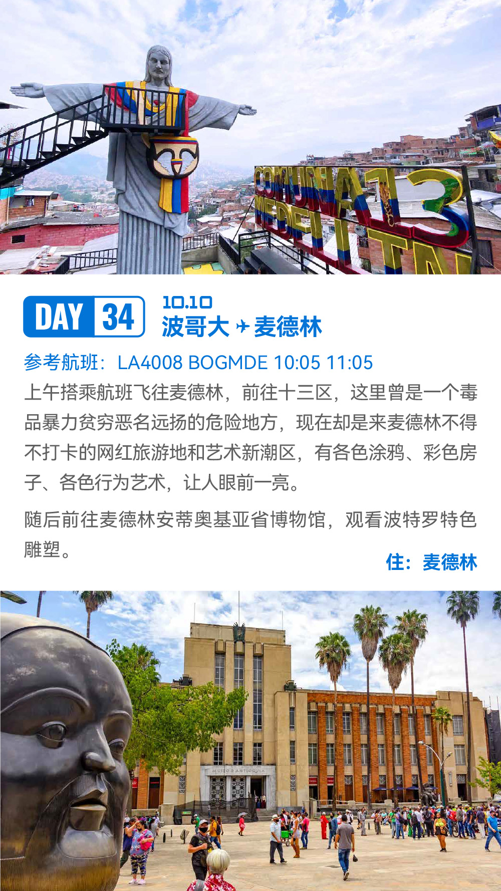 解锁世界落差最大瀑布:天使瀑布;邂逅世界最独特闪电奇观:卡塔通博闪电;漫步“液体彩虹”:彩虹河;畅游“沙漠与湖泊共生”奇景:千湖沙漠;登顶世界最高缆车:梅里达缆车;探秘殖民时代瑰宝:卡塔赫纳古城;见证城市重生奇迹:麦德林 Comuna 13 艺术区
