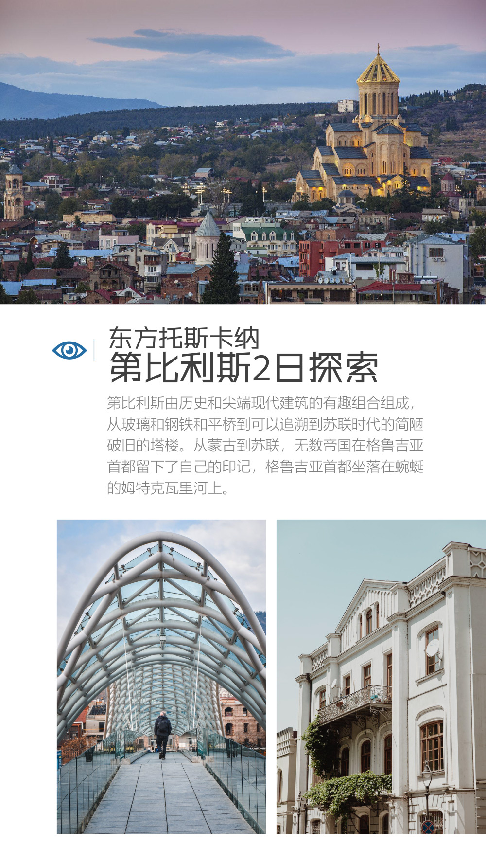 漫步第比利斯老城,打卡标志性的和平桥,随后前往现代风格的里克公园,乘坐缆车登上始建于公元 4 世纪的纳里卡拉要塞,俯瞰全城风光,并参观要塞内的圣尼古拉教堂。