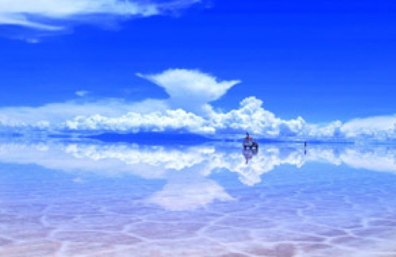 “天空之镜”:乌尤尼盐沼,这是世界最大的盐场,面积12000平方公里。盐壳惊人完美,就像一片雪原,又宛如雨季中一面巨大的镜子。