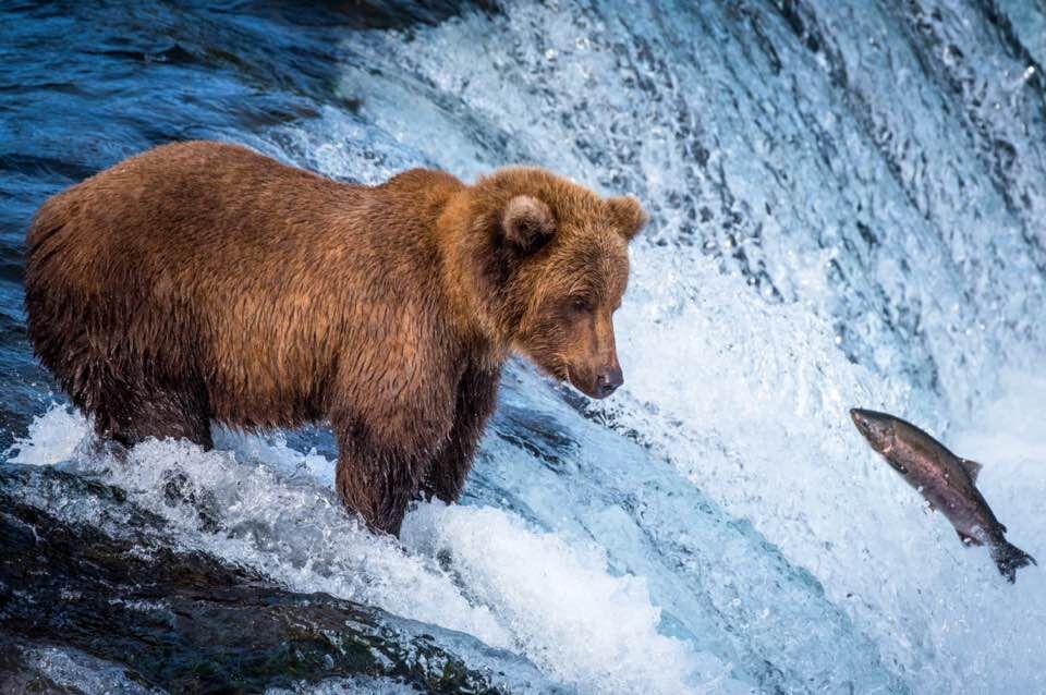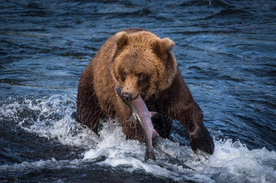 卡特迈国家公园棕熊保护区:是观看棕熊最直接的国家公园,阿拉斯加棕熊回游泳,非常善于捕捉红鲑鱼(也称三文鱼)。每年夏秋季,生活在海洋里的鲑鱼要游回河里产卵,这就是著名的红鲑鱼回流期。这时棕熊就会聚在一起捕食红鲑鱼,用肥大的熊掌或者长满锋利牙齿的大嘴捕捉红鲑鱼。