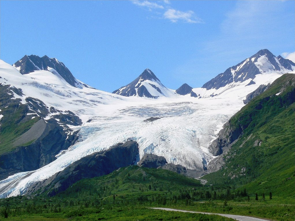 沃辛顿冰川:是查里森高速公路沿线的热门景点,可供人们观赏冰川:既可以走上面的栈道(难度适中,不适合有恐高症的游客),也可以走下面的栈道跨过溪流就可以直接到达瀑布区。