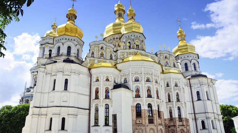 ※ 基辅洞窟修道院:联合国教科文组织世界文化遗产之一,建于1051年,是东正教“罗马”的核心。修院区分上下二区,上区设有教堂,下区是东正教僧侣葬身之处。