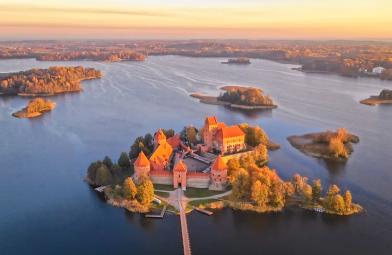 驱车前往特拉凯城堡,乘船游加尔瓦湖,参观位于加尔瓦湖心岛上的特拉凯城堡,城堡由加尔维斯湖环绕,粉红色的砖石砌成,弥漫着神秘浪漫的气息。游览完毕乘车前往考纳斯。