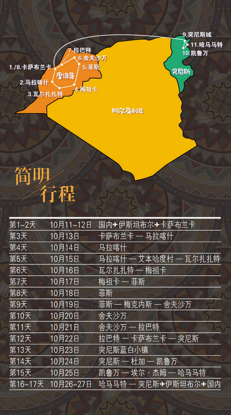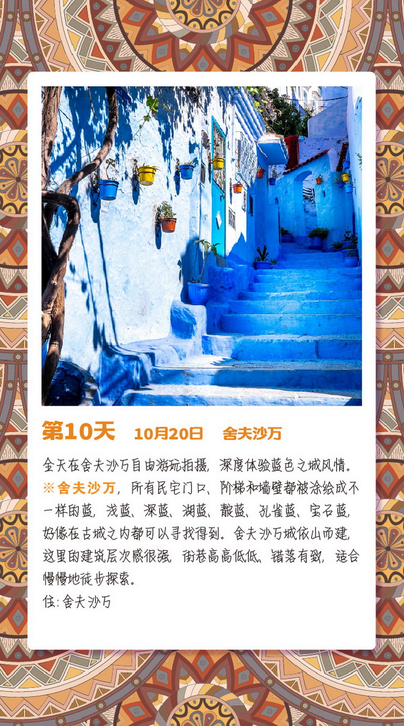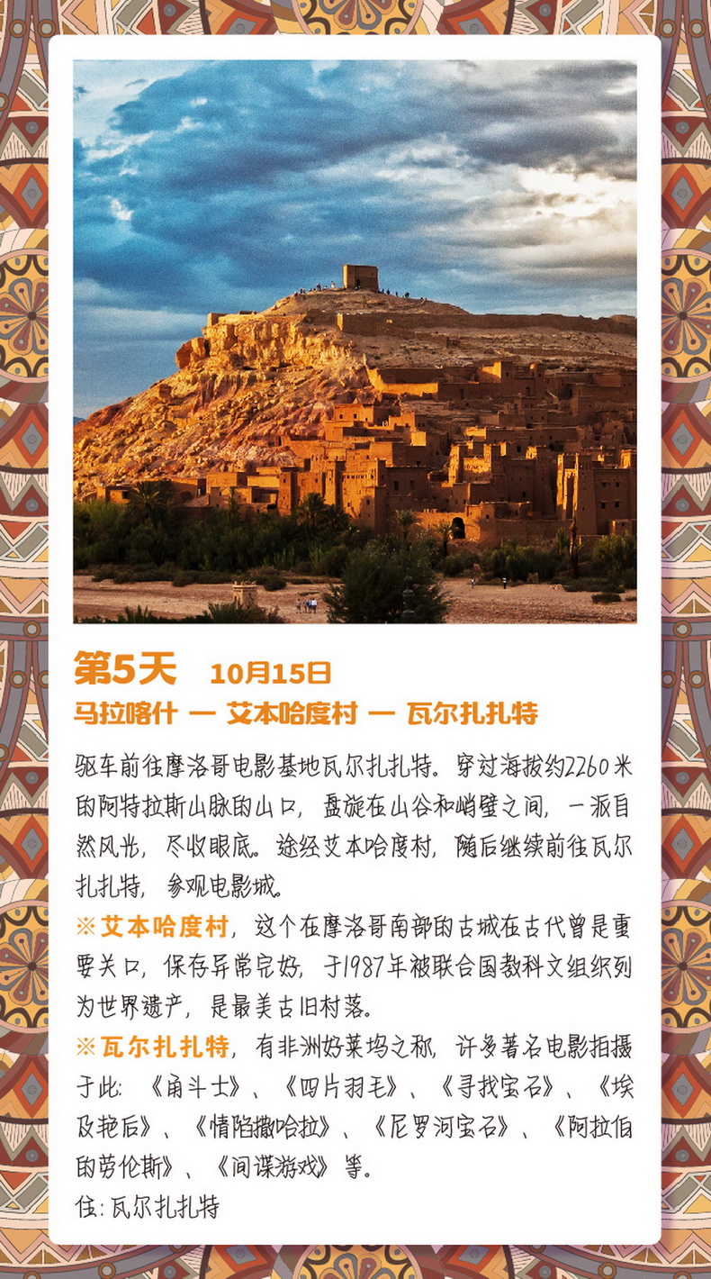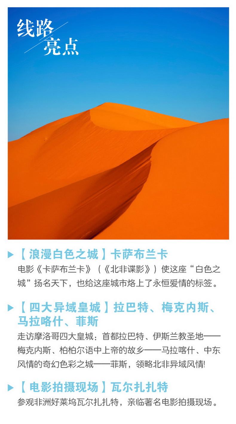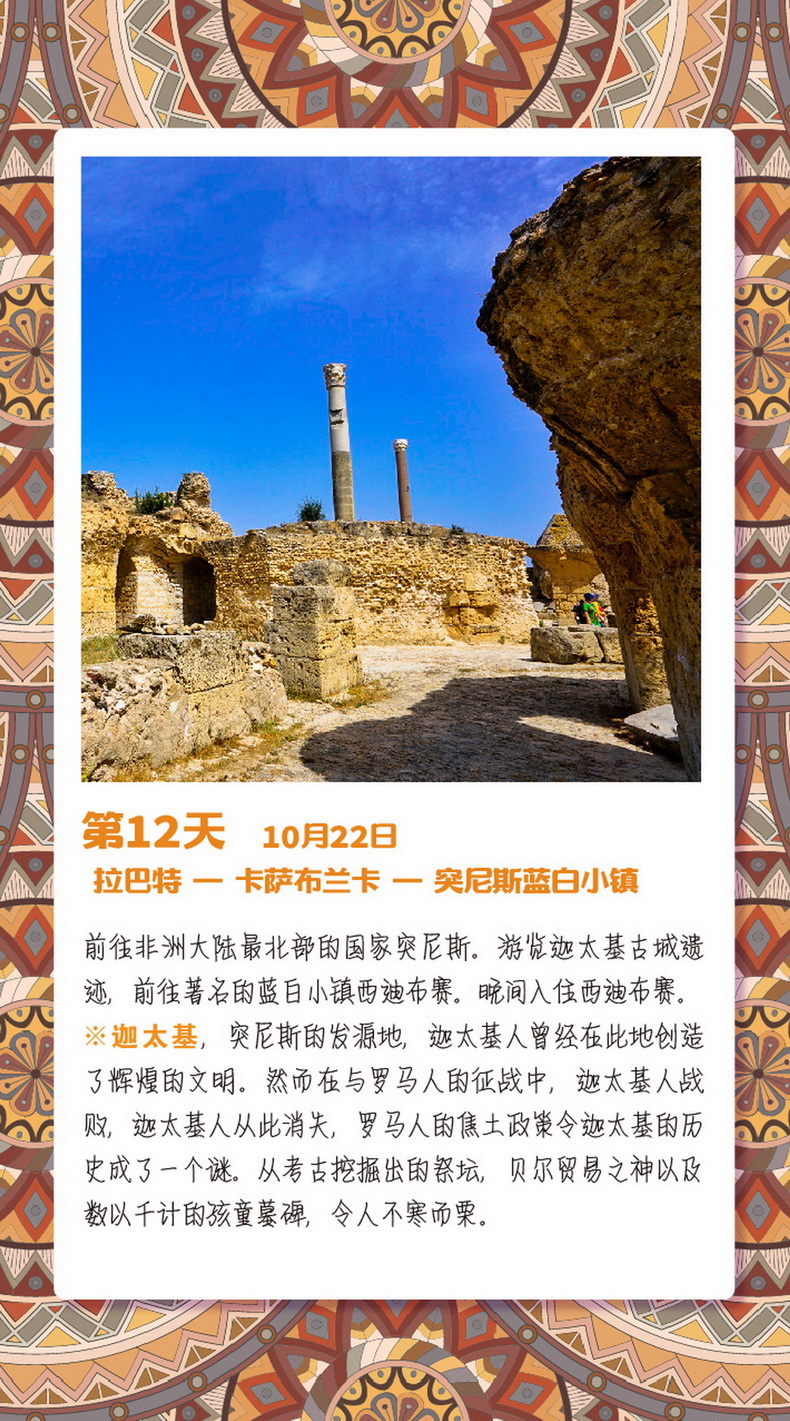 完美行程/深度游览/色彩视觉盛宴/一半地中海一半撒哈拉/伊斯兰和古罗马风情的对撞