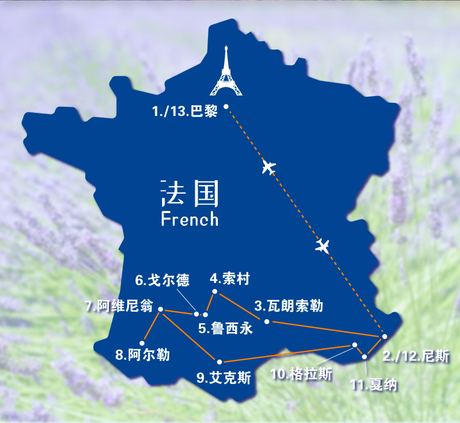 从国内出发,飞往巴黎入境,转机飞往蔚蓝海岸上的明珠-- 尼斯。