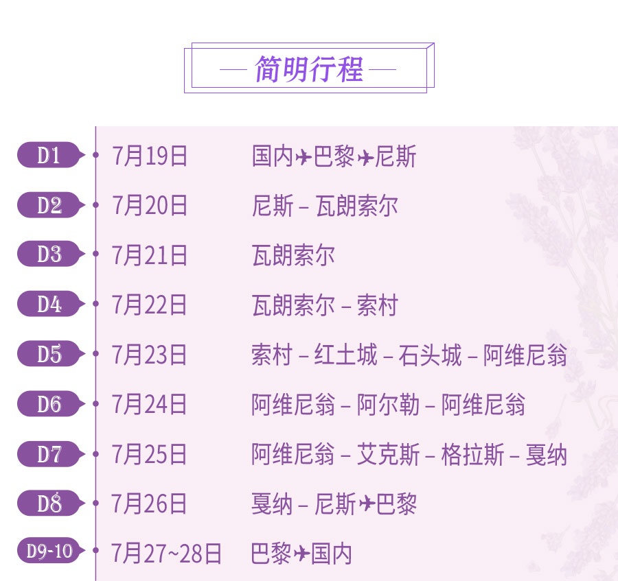 连续3天游览薰衣草花田/梵高的向日葵/世界香水之都/电影节举办地戛纳/度假胜地尼斯