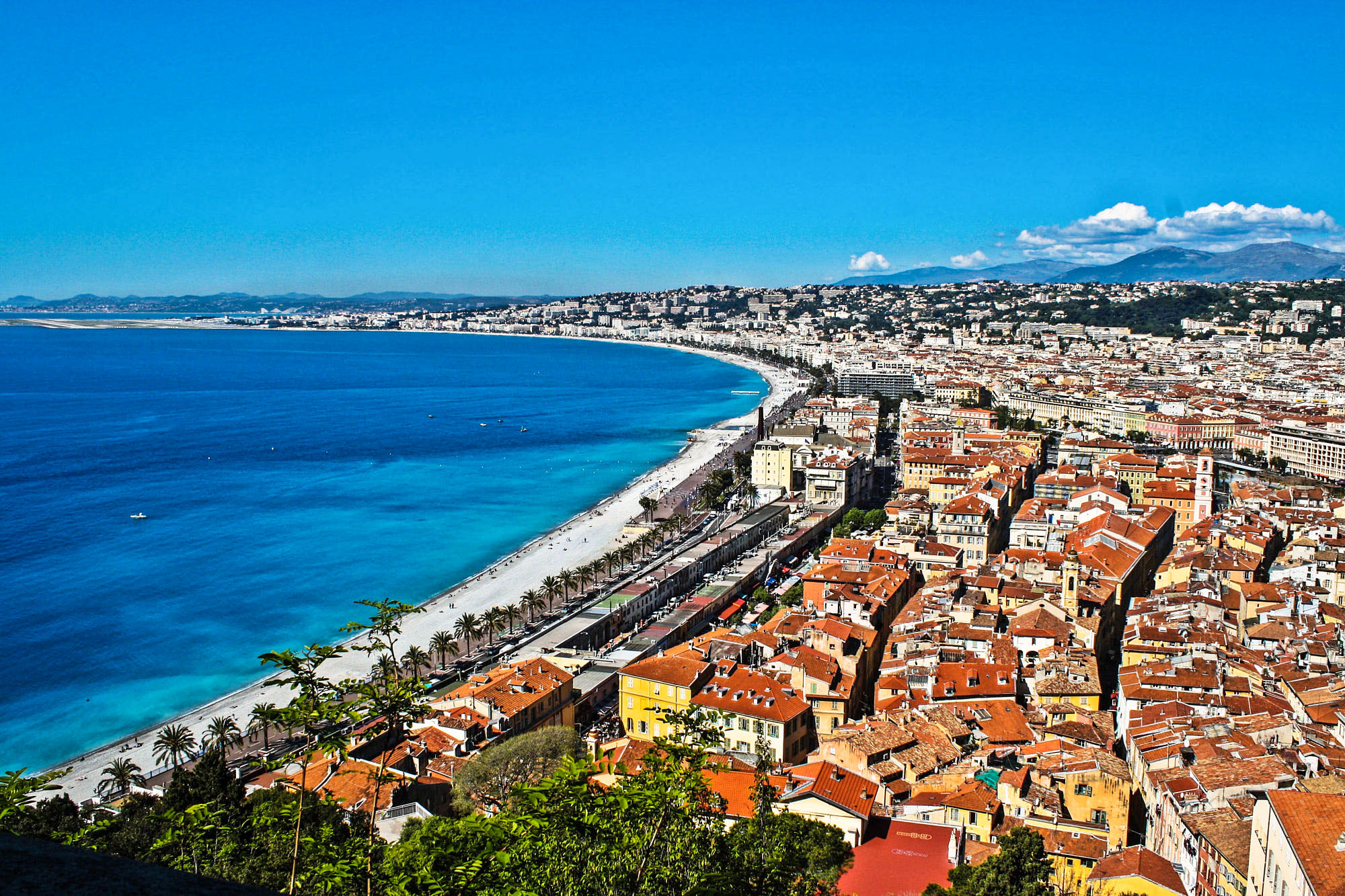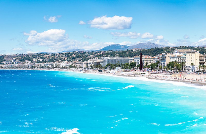 尼斯:位于宁静的地中海及雄伟的阿尔卑斯山脉之间,依山傍水,拥有透明的阳光、得天独厚的气候条件和优质的海滩,使之成为法国最富盛名的代表性度假地。湛蓝的海天一色、绵长的卵石海滩、高耸的棕榈树以及众多奢华游艇是它标志性的风景线。