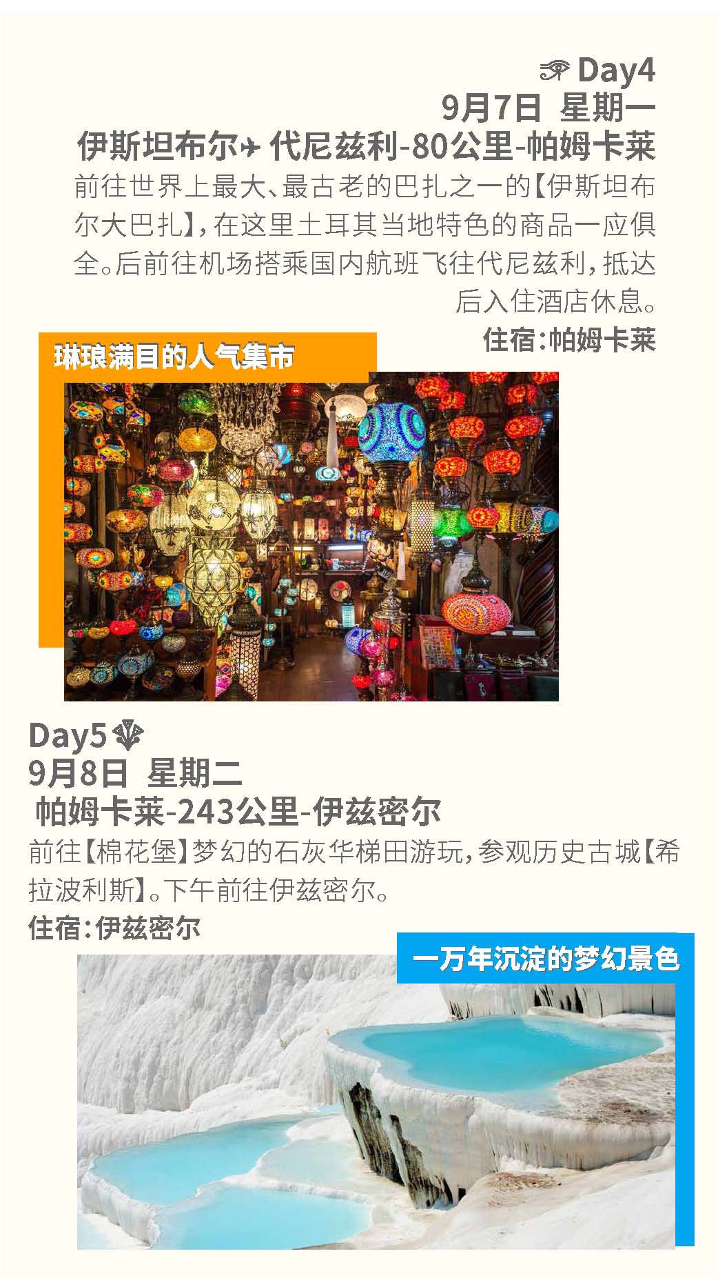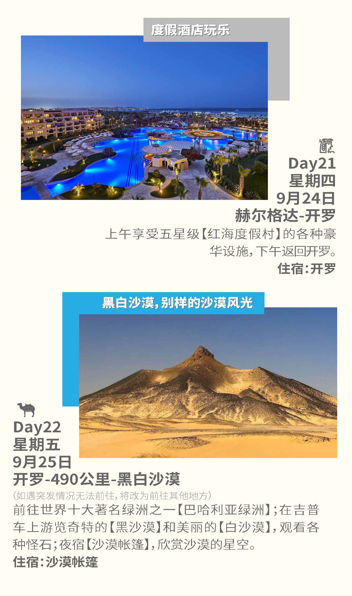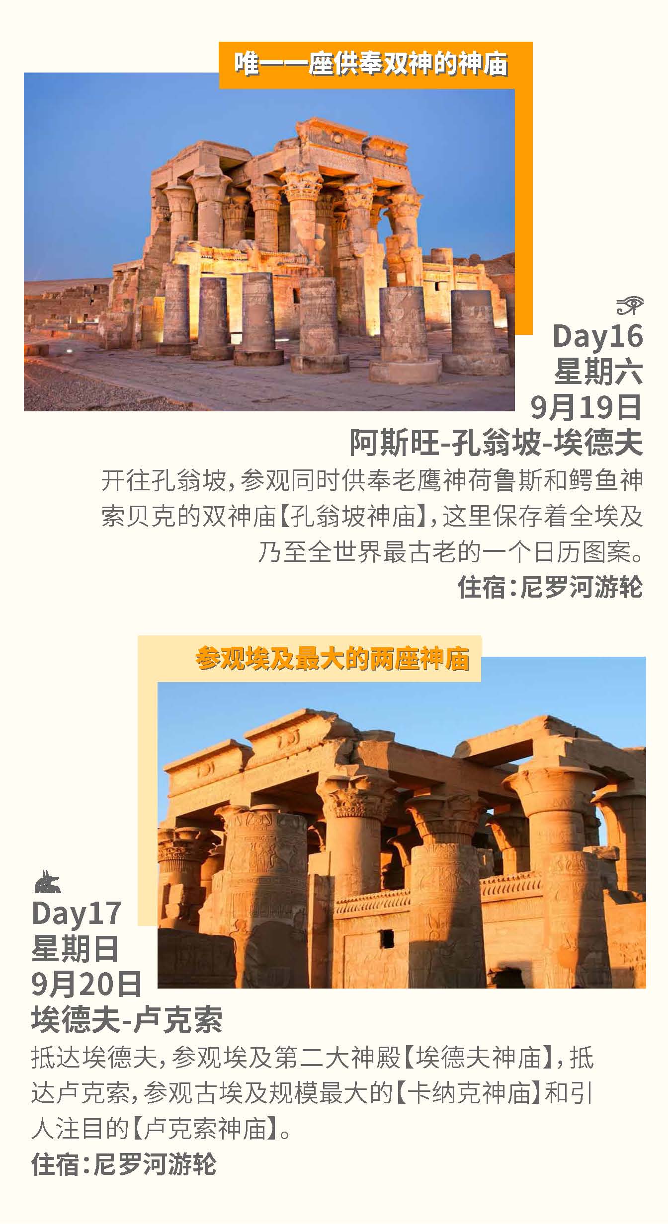 乘坐五星级游船沿着尼罗河饱览法老们的千年遗产;埃及胡夫金字塔、阿布辛贝神庙、帝王谷、黑白沙漠;土耳其卡帕多奇亚、棉花堡等经典景点。