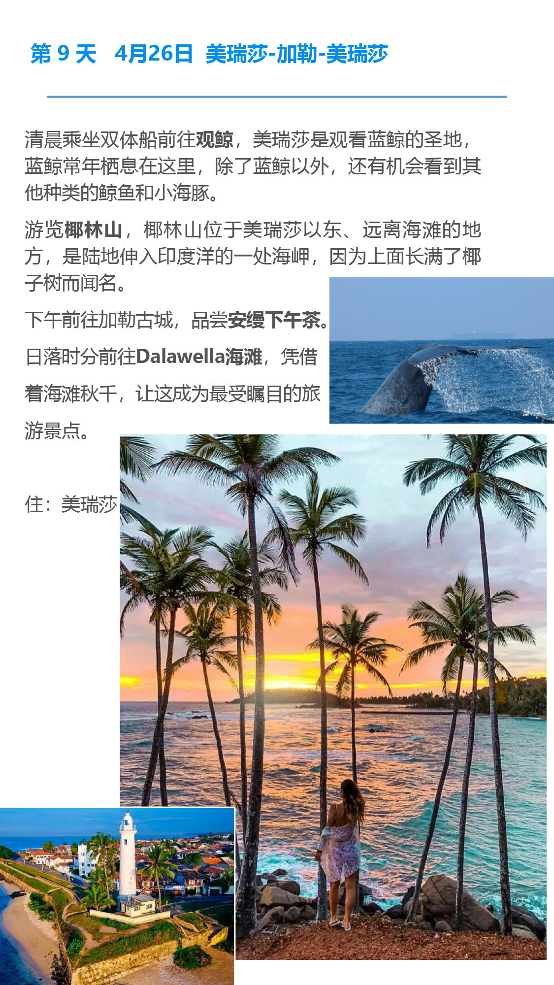 解锁地道玩法——体验黑牛拉车、尼甘布看渔市、品尝斯里兰卡特色美食;经典一网打尽——朝圣佛牙寺、乘坐斯里兰卡经典高山茶园、诺瓦伊利亚日落;海边度假体验——小欧洲加勒百年古堡、出海观鲸;